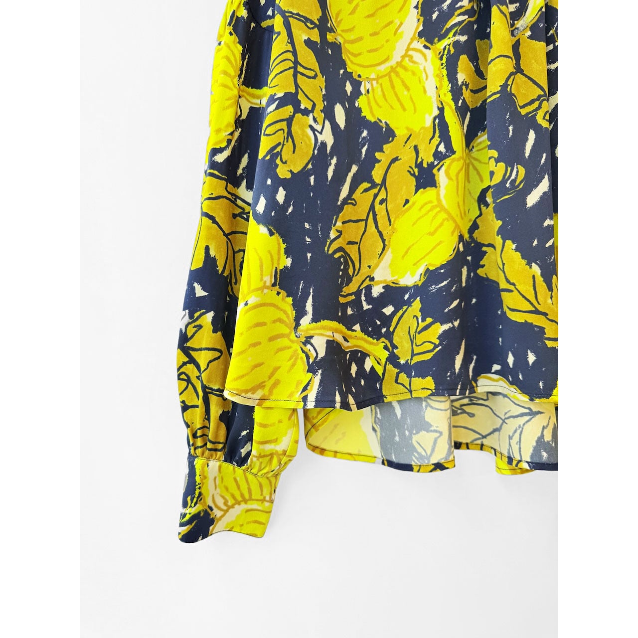 グラフィカルなフラワー柄を大胆にデザインしたオーバーサイズブラウス。