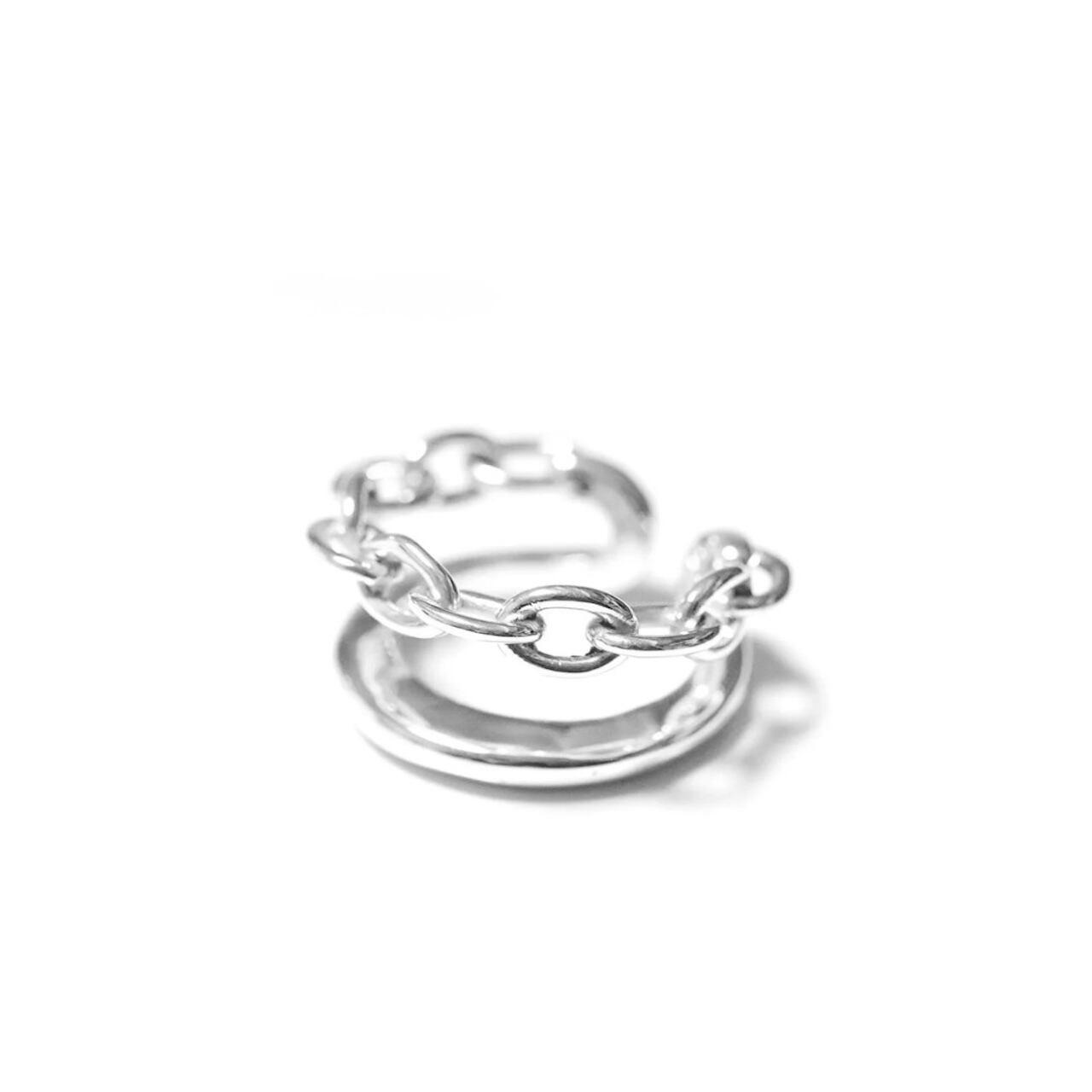 チェーンとシンプルなリングを2本連ねたシルバーリング。