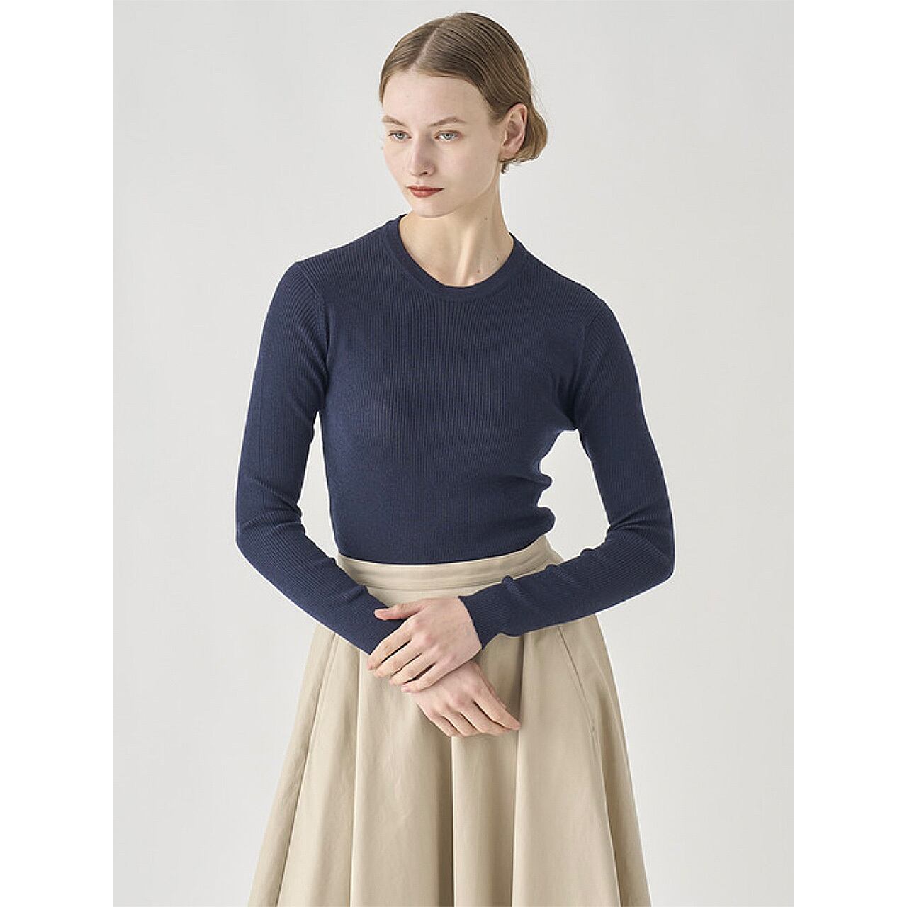 アウターを重ねてももたつかず、上質な薄手のハイゲージニットならではの質感がコーディネートを上品に格上げします。