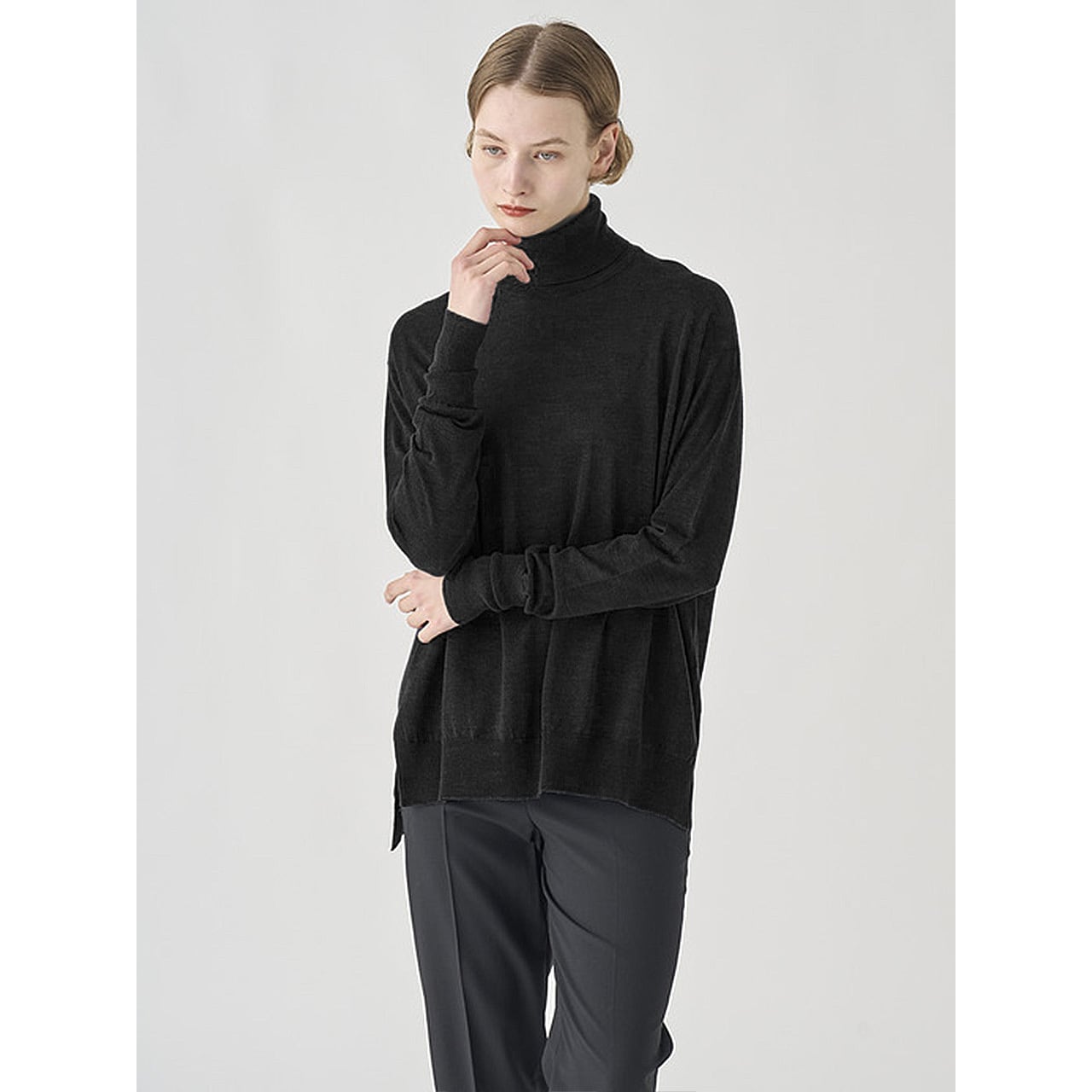 JOHN SMEDLEY - MALLERY OVERSIZED TURTLENECK KNIT TOP in BLACK | MALLERY