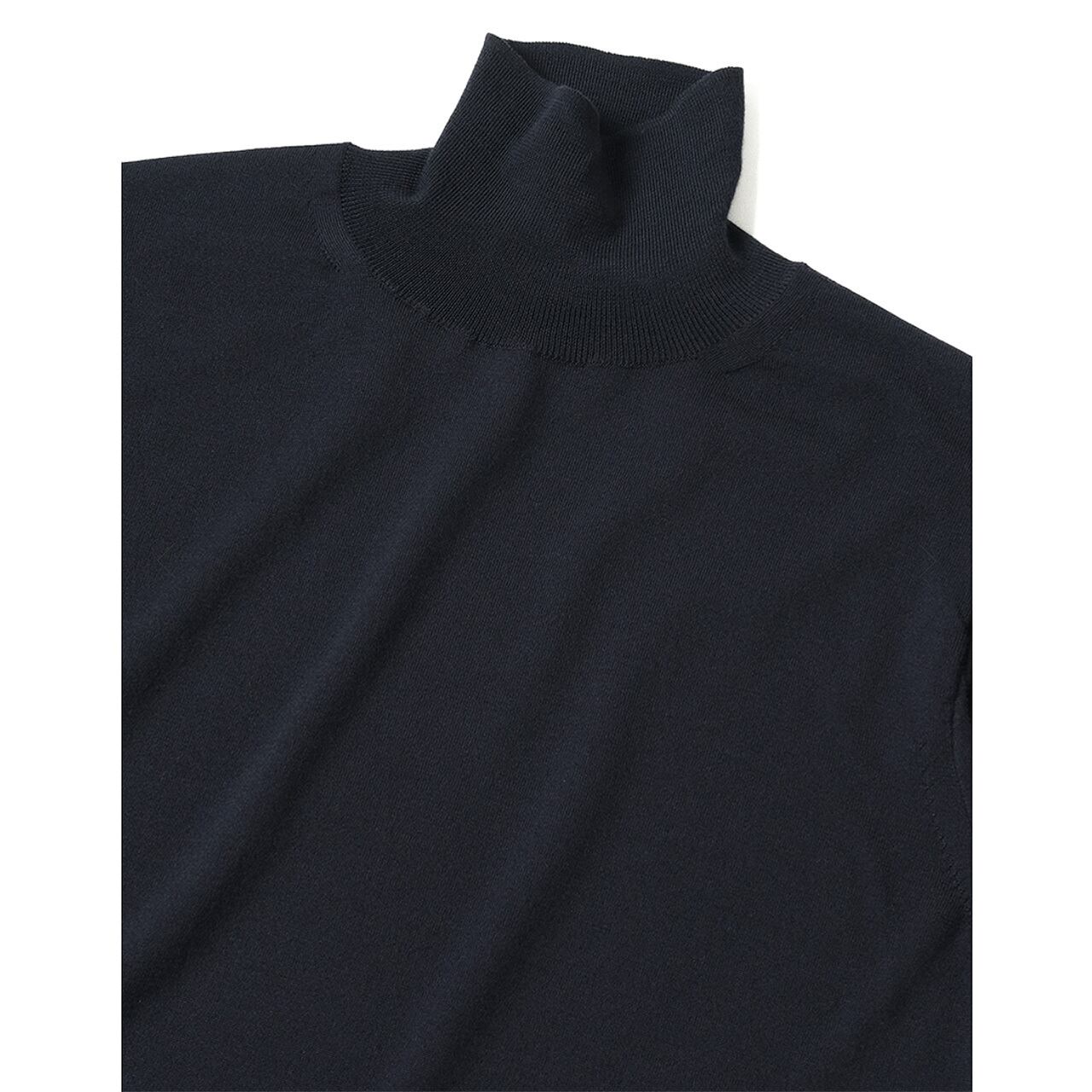肌着としても使われている柔らかなスーパーエクストラファインメリノウールをハイゲージの編み機で編み立手たセーター。程よい良とりのあるシルエットでリラクシーな着心地。