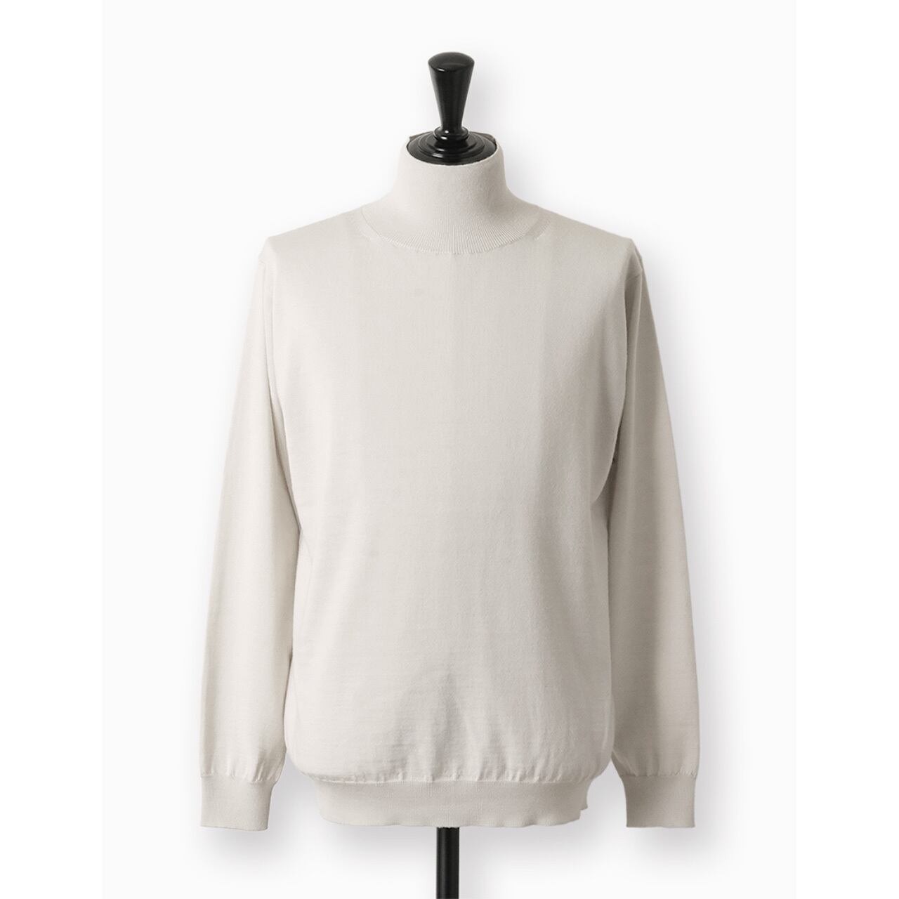 肌着としても使われている柔らかなスーパーエクストラファインメリノウールをハイゲージの編み機で編み立手たセーター。程よい良とりのあるシルエットでリラクシーな着心地。