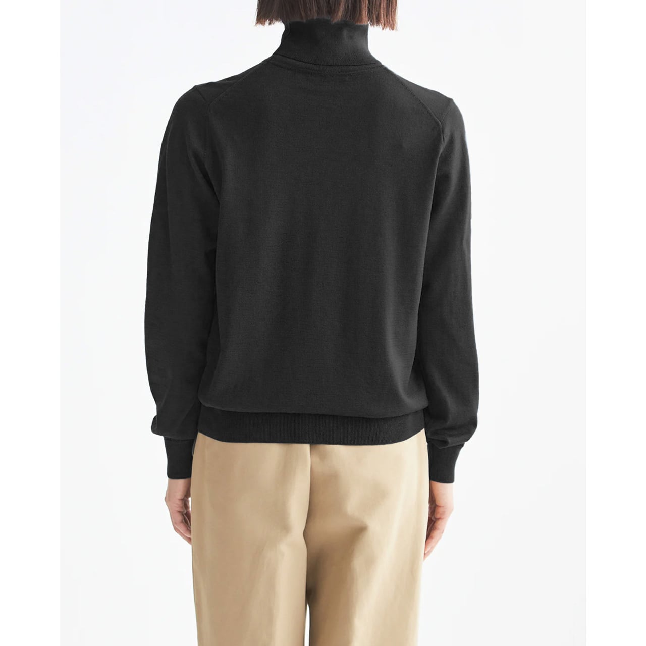 厳選された繊維長の長い羊毛を使用した、最高級のエクストラファインメリノウールを用い、30ゲージ 天竺をフルファッション*で丁寧に編み立てたタートルネック。