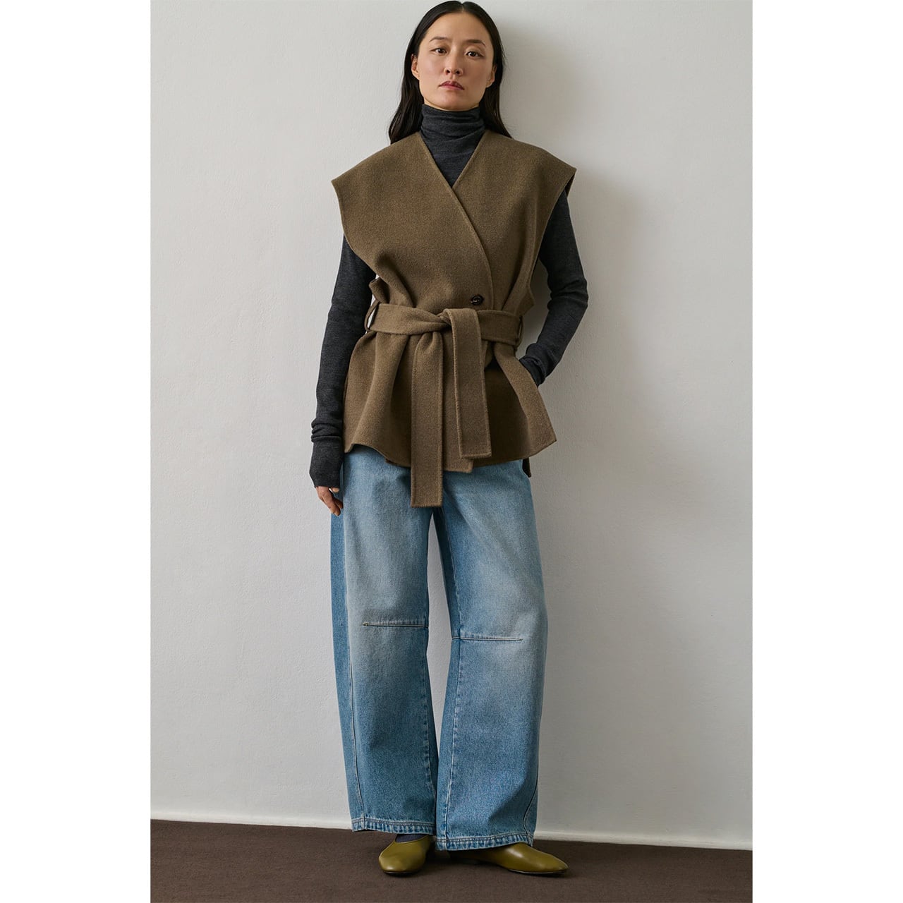 ドロップショルダーとオーバーなサイズ感で旬なシルエットが決まる、ショート丈ジレ。