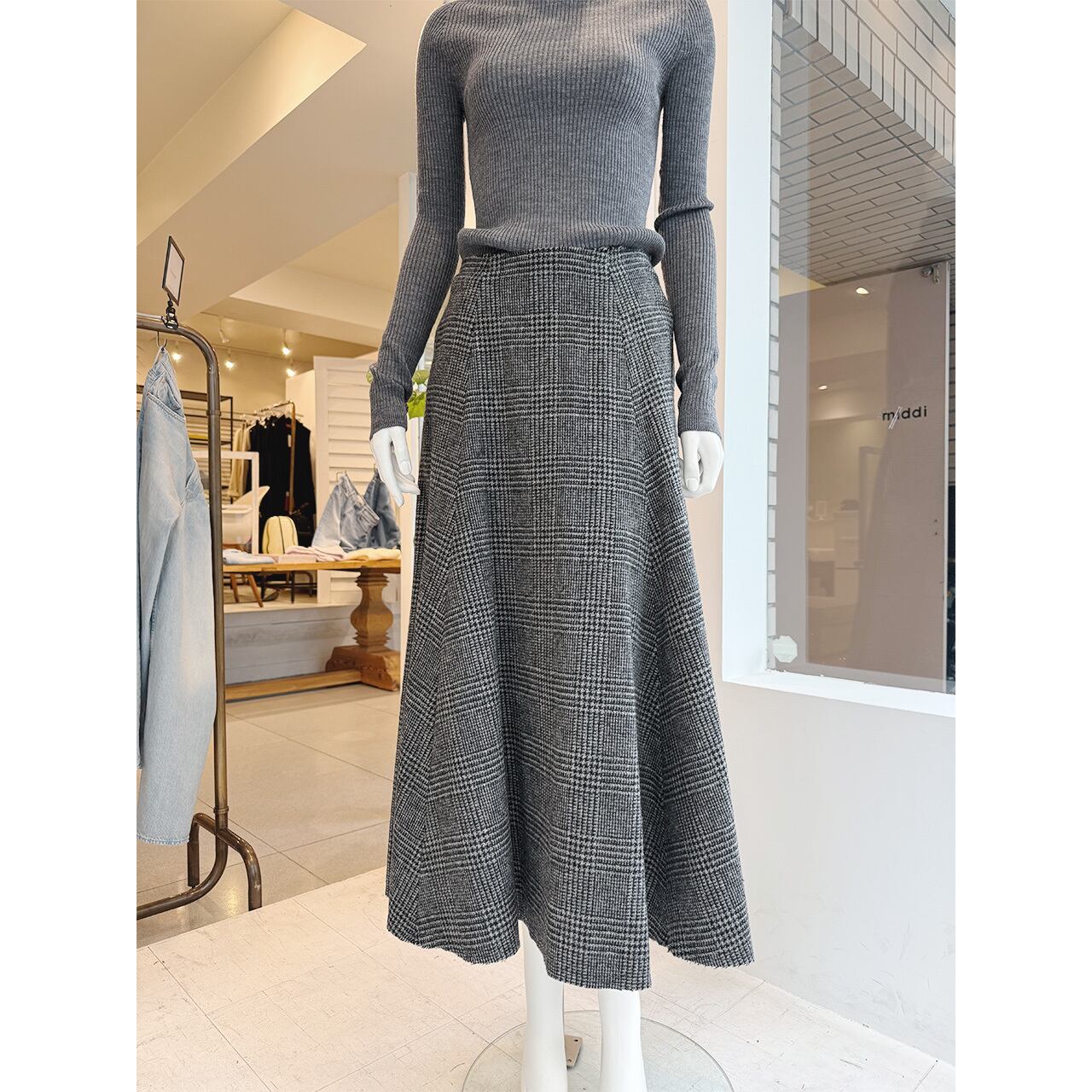 クラシックなムード漂うグレンチェック柄のフレアスカート。