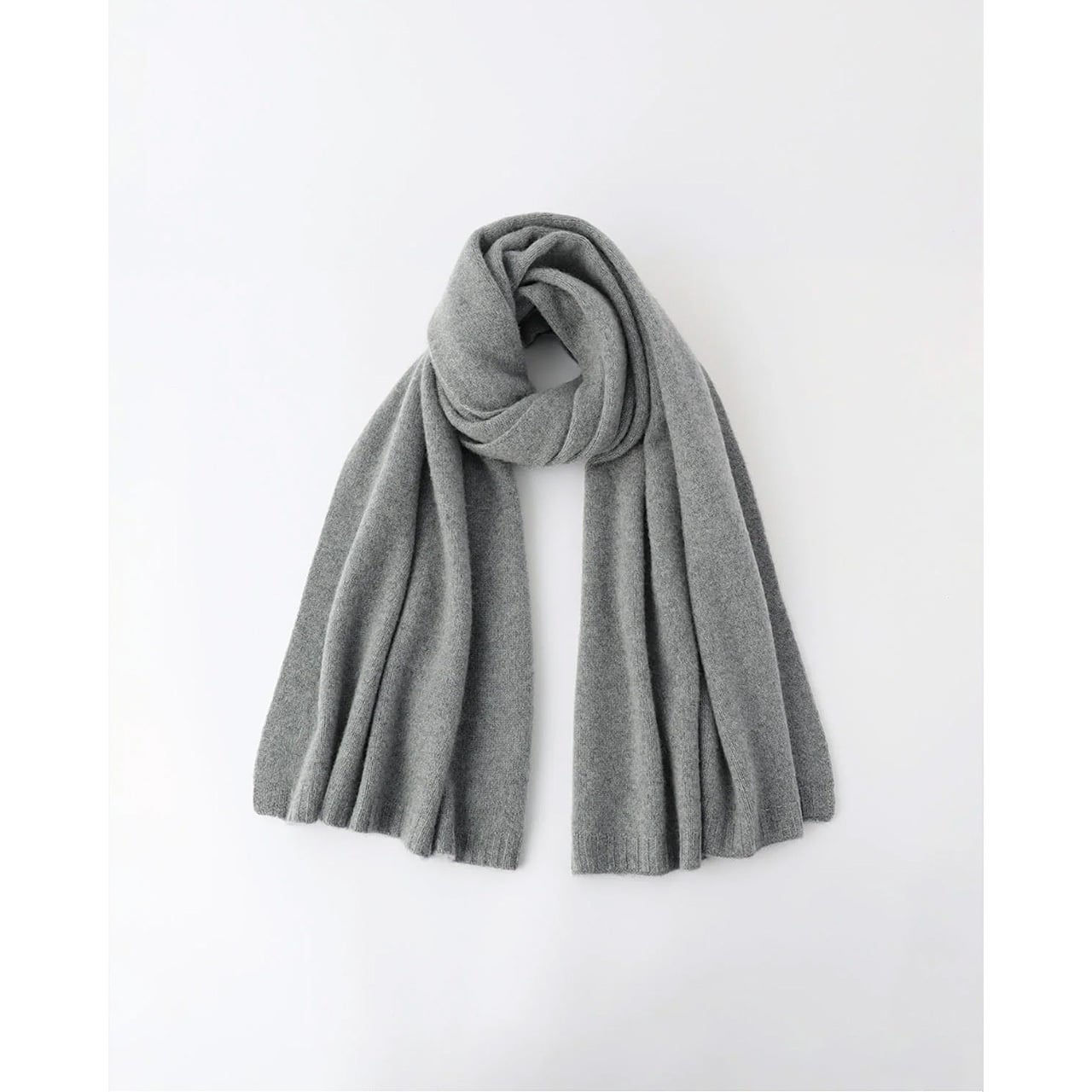 ナノイオン洗浄プロセスによって、繊維が自然なカール効果を持つブラッシュドカシミヤを用い、7ゲージ 天竺を度甘に編みたてたカシミアストール。