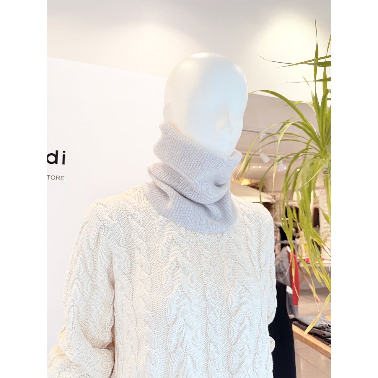 中国内モンゴル産の最高級カシミアを用い、5ゲージ フルニードルで丁寧に編み立てたスヌード。