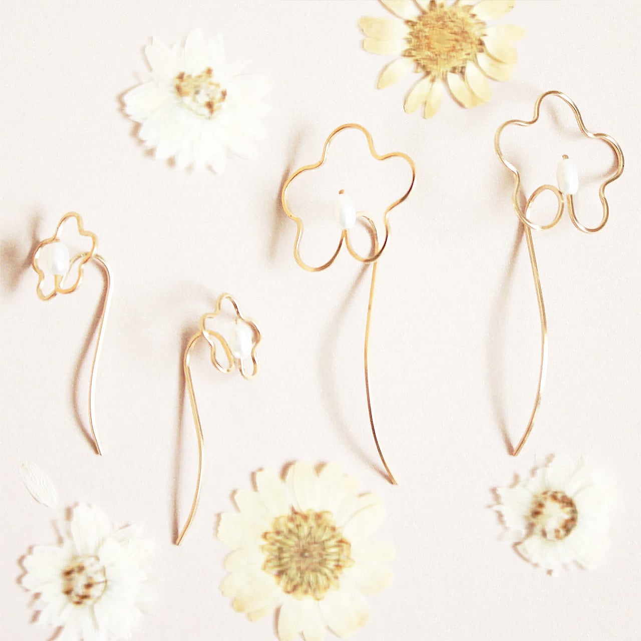 ニューヨークで一つ一つ丁寧に手作りされた、淡水真珠で飾られた花形のイヤリング。