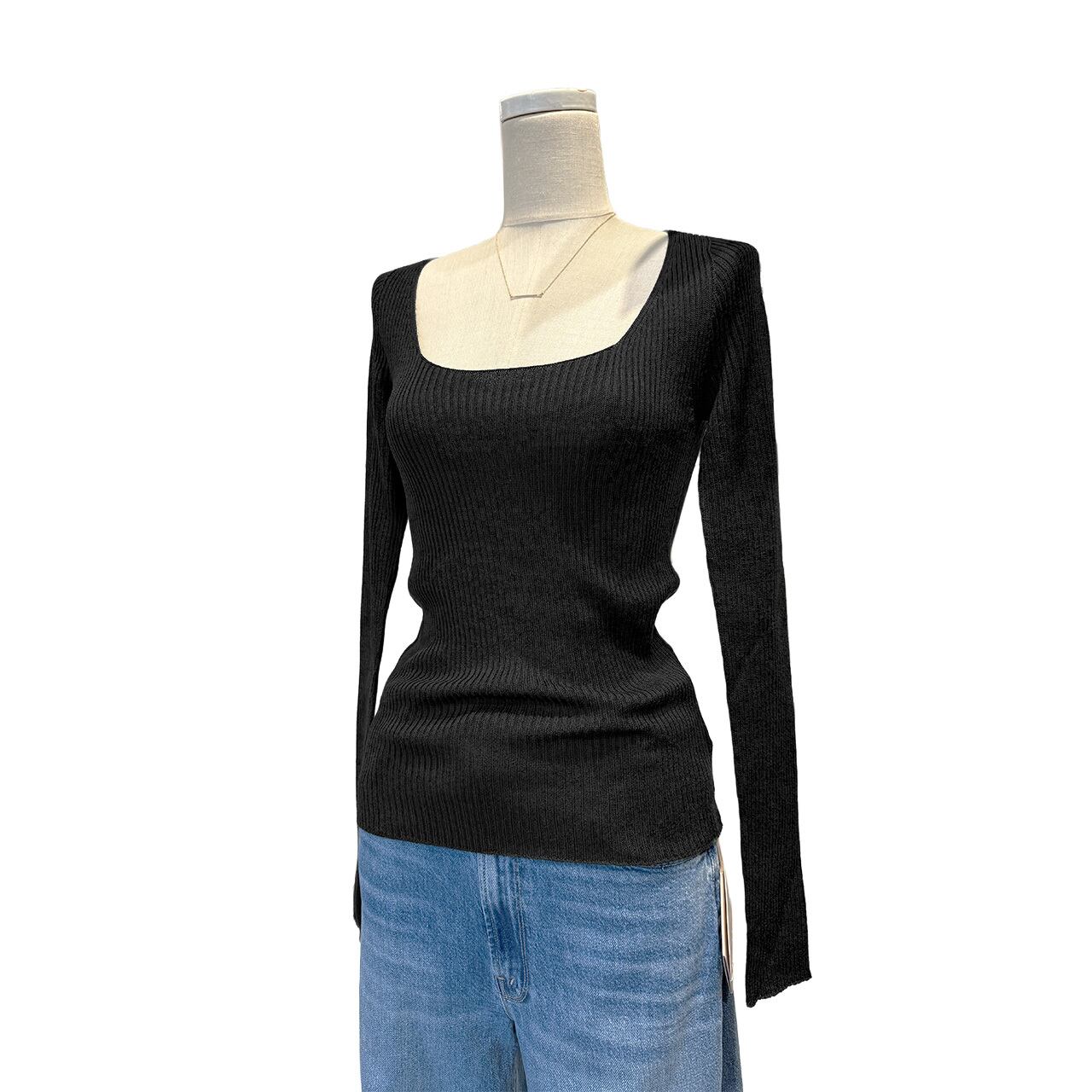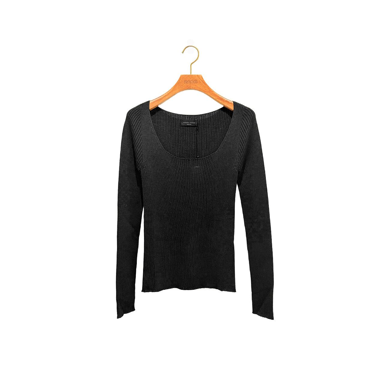 roberto collina - SCOOP NECK RIB SWEATER in OFF BLACK | 253F08226