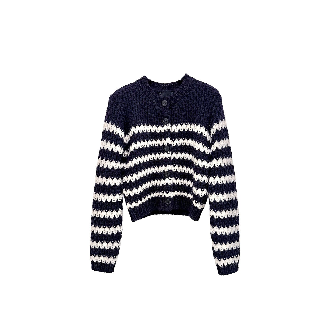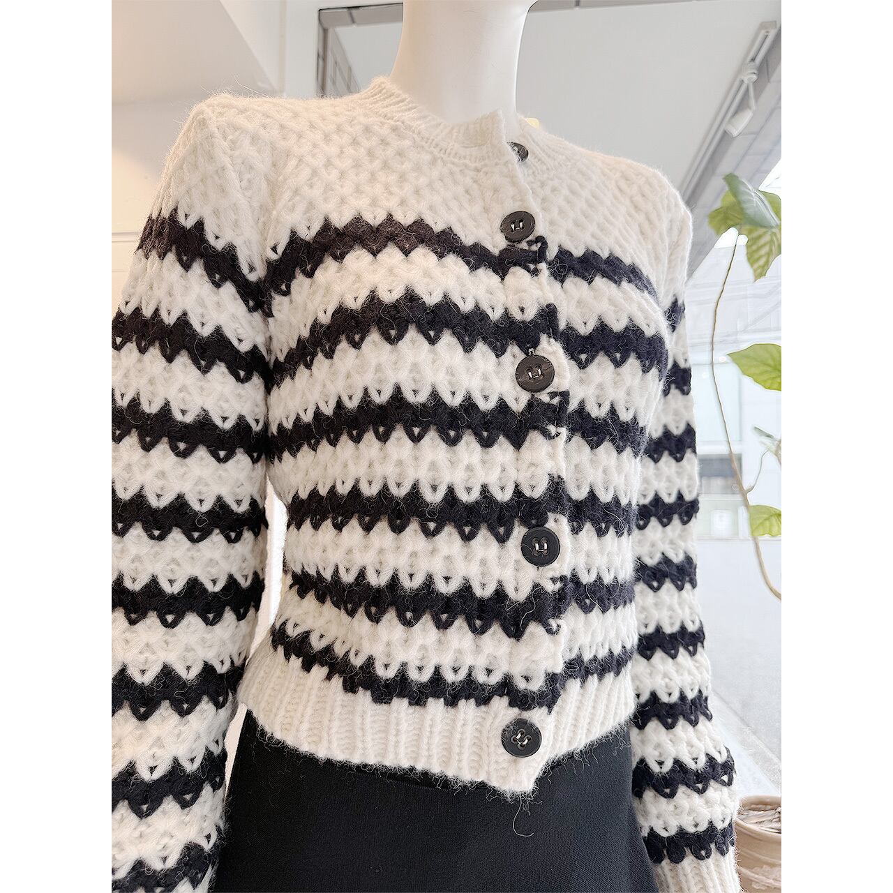 アルパカとメリノウールをふんわり編み立てたカーディガン。