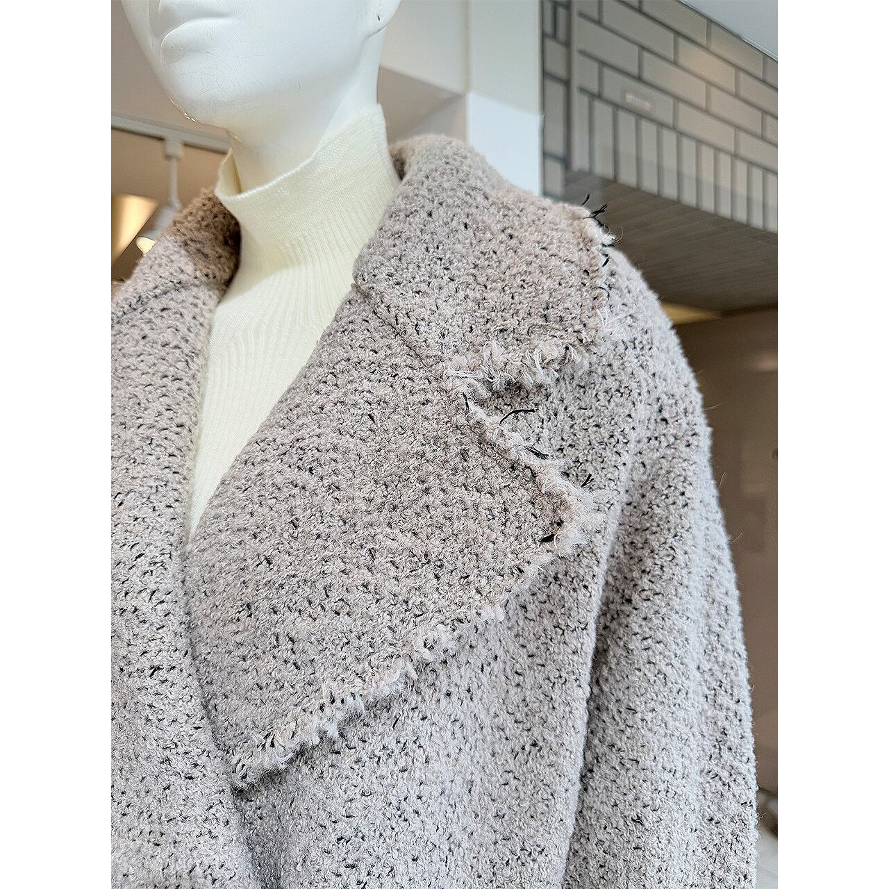 ふっくらとした柔らかな質感と暖かな風合いが魅力のブークレヤーンで織られたコート。