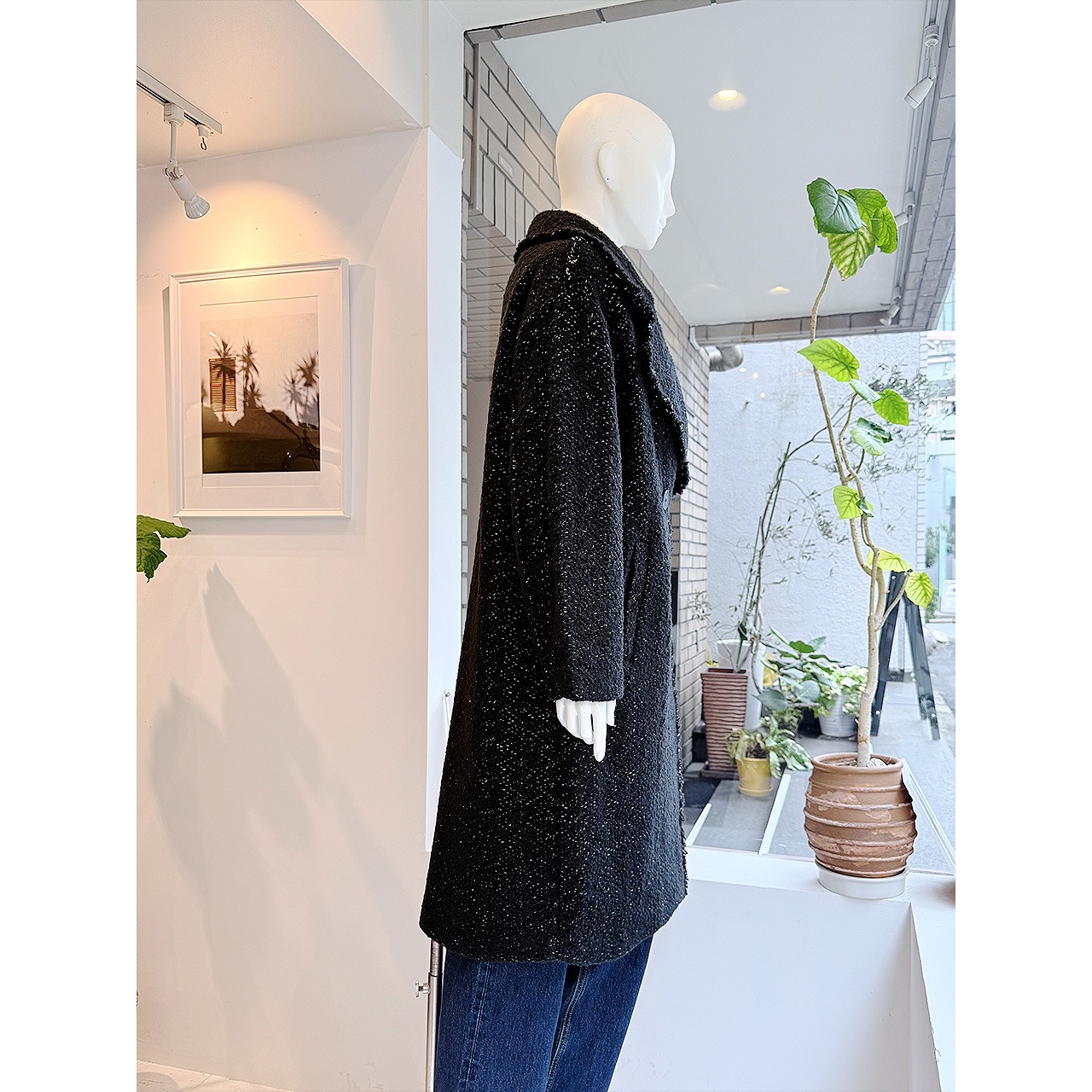 ふっくらとした柔らかな質感と暖かな風合いが魅力のブークレヤーンで織られたコート。