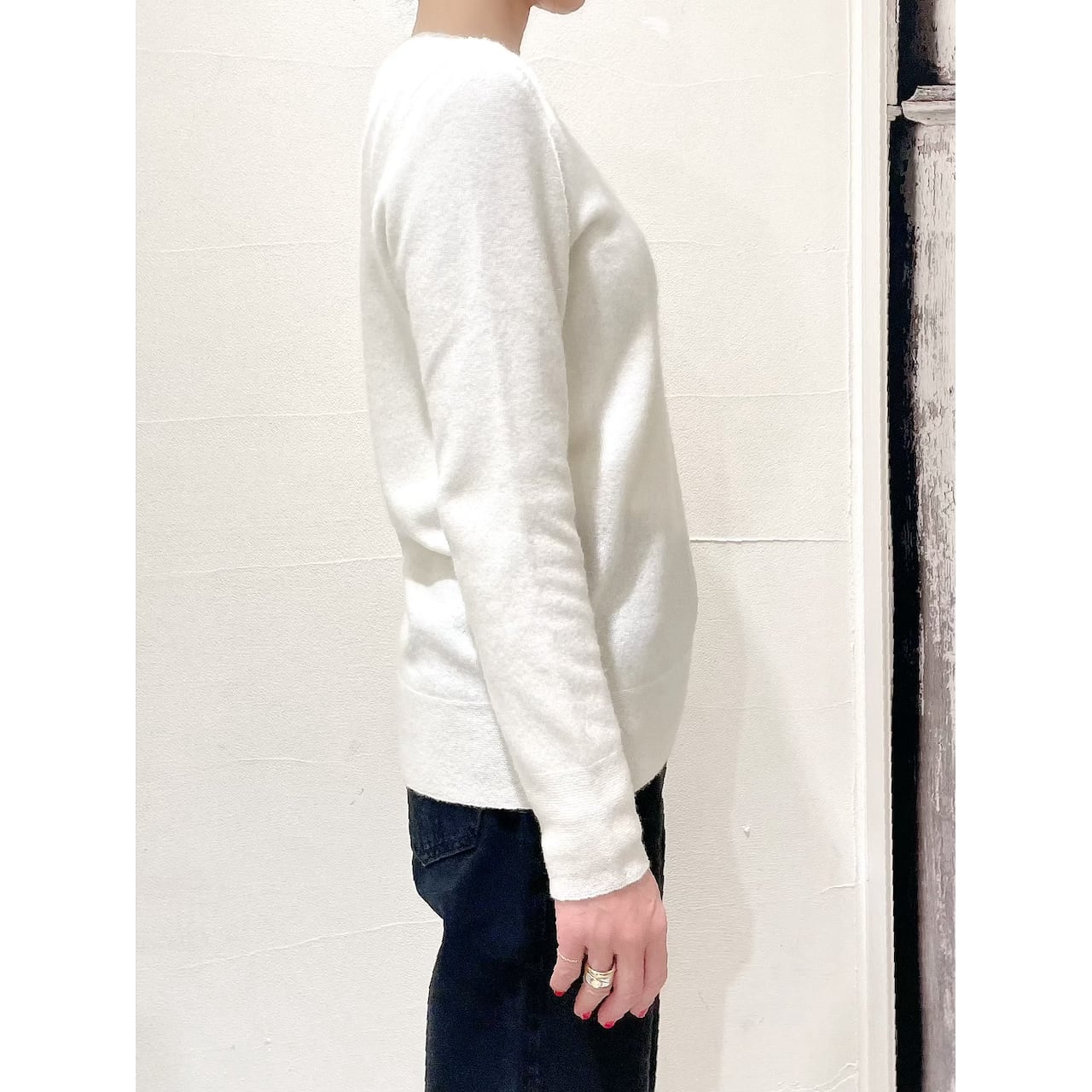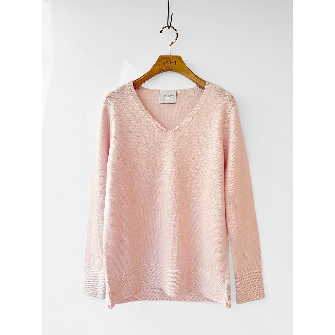 middiオリジナルブランド・Maryleboneのカシミヤ100%セーター。首元をスッキリ美しく見せるVネックラインに、シンプルでベーシックなシルエットがデイリーに着回しやすい1枚。