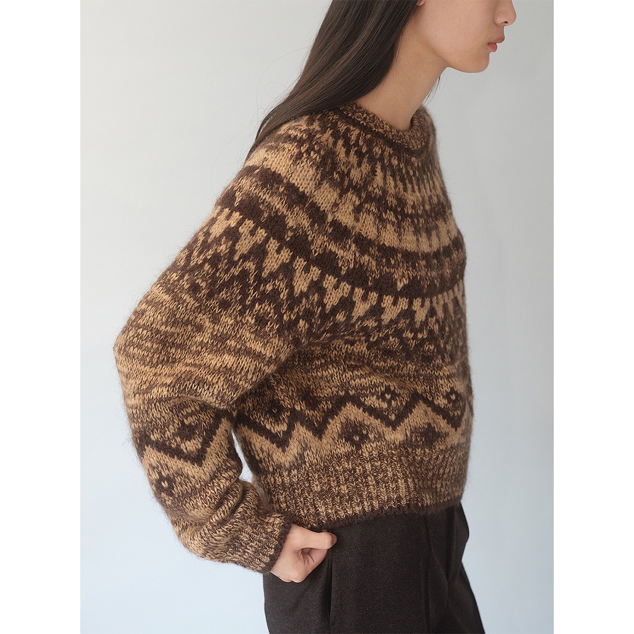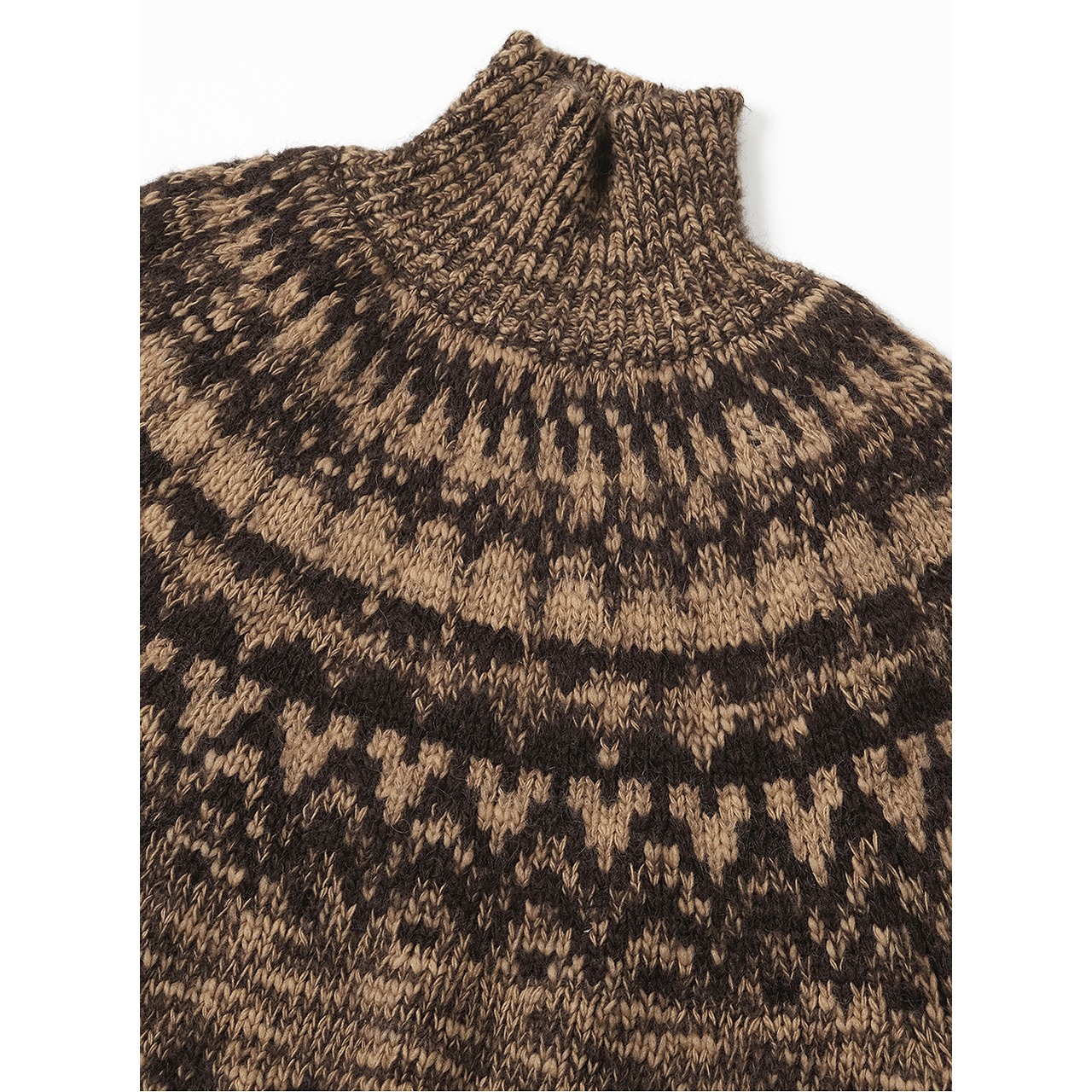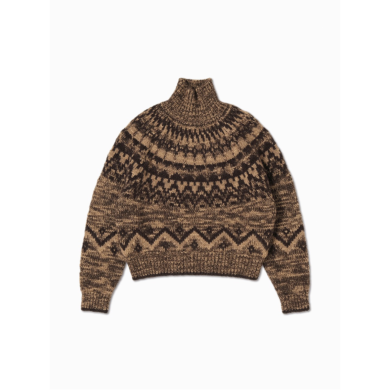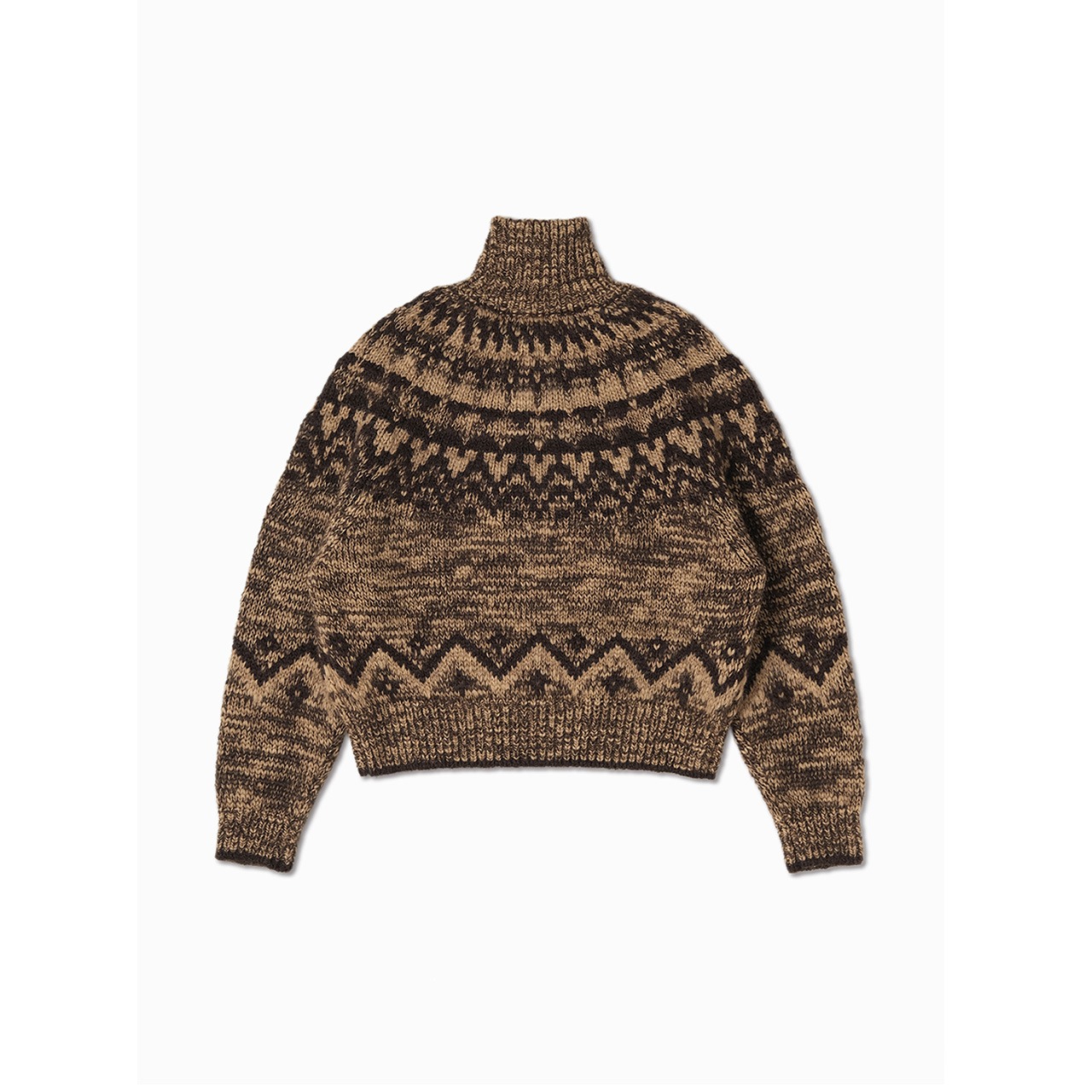 BATONER - MOHAIR NORDIC TURTLE NECK SWEATER in BROWN | BN-25FL-050