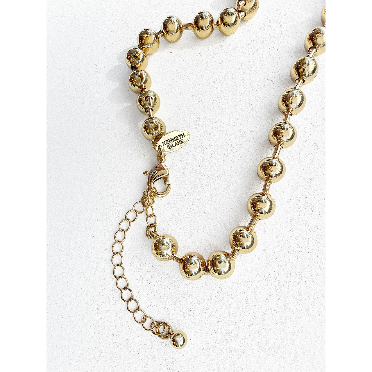 Kenneth Jay Lane - CLEAR HEART PENDANT on GOLDEN BALL CHAIN NECKLACE | 100NGX