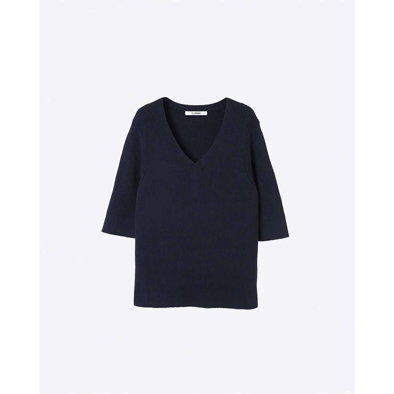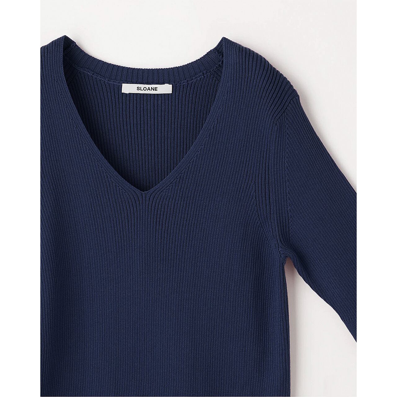 SLOANE - 14G COTTON KNIT V-NECK TOP in NAVY | SL10S-782