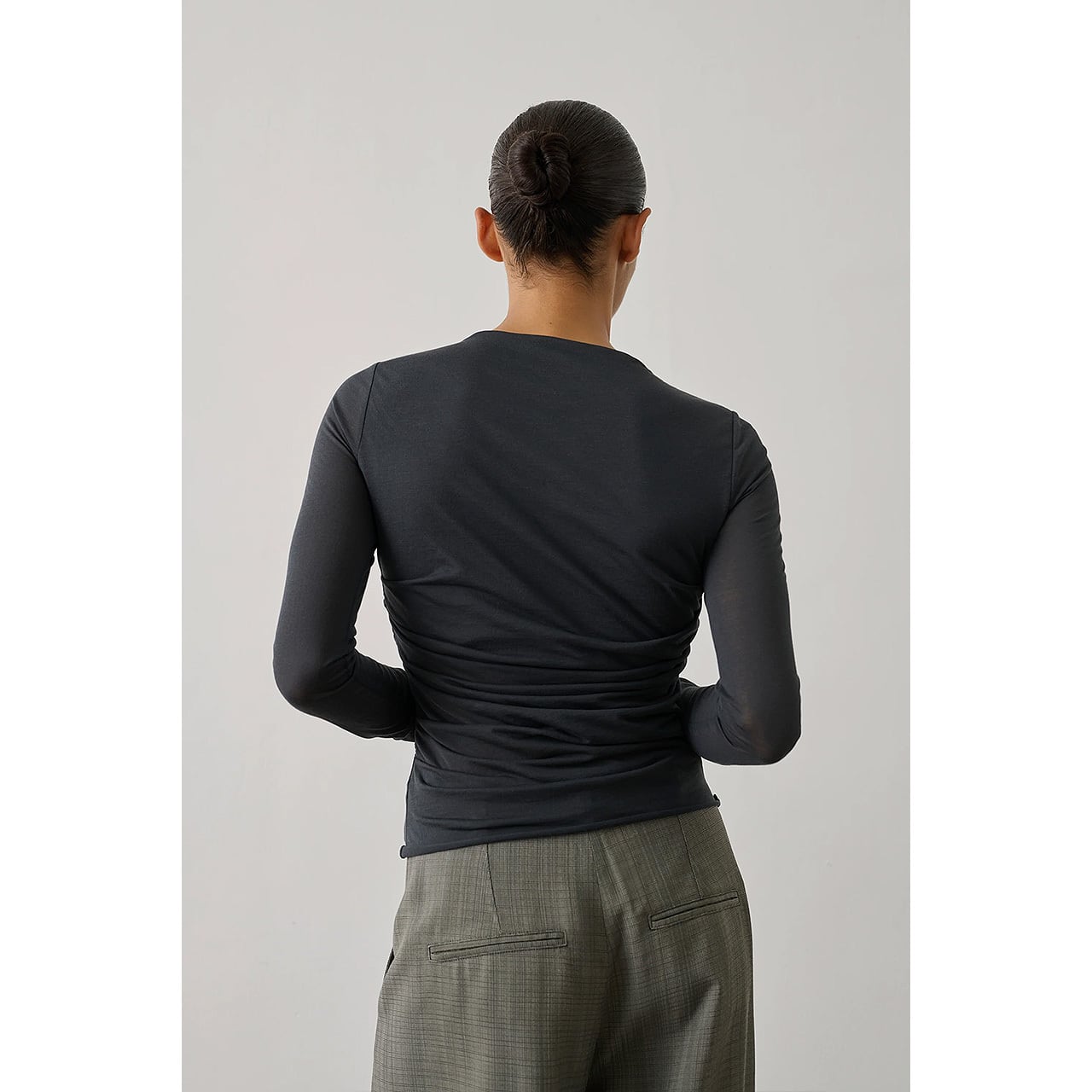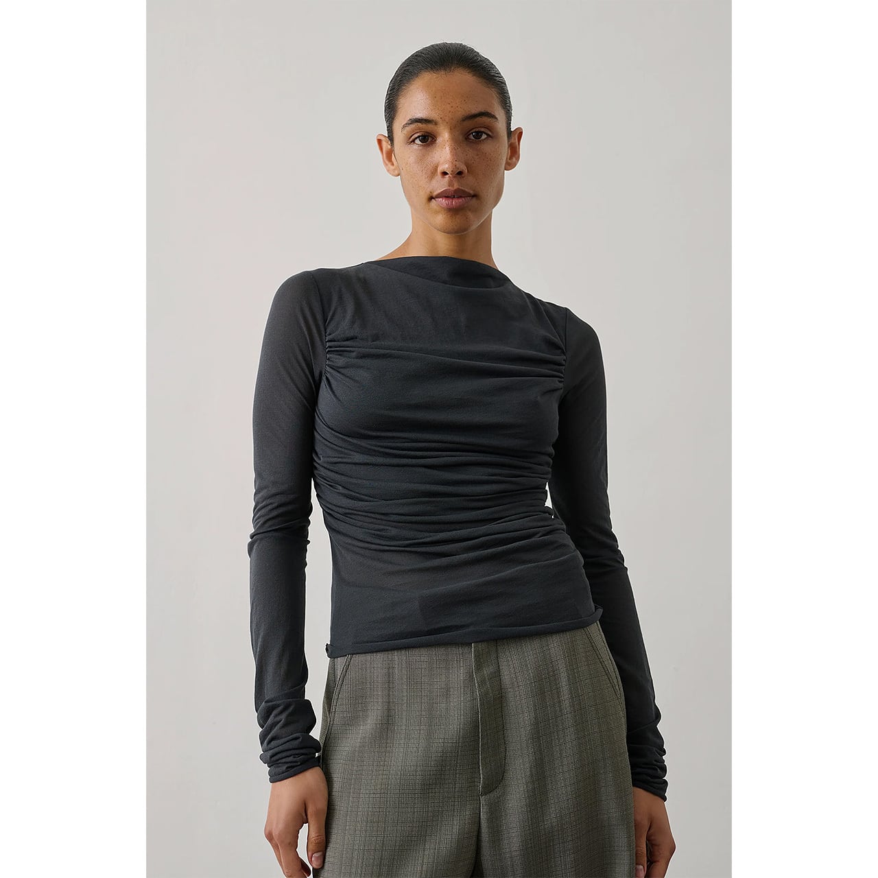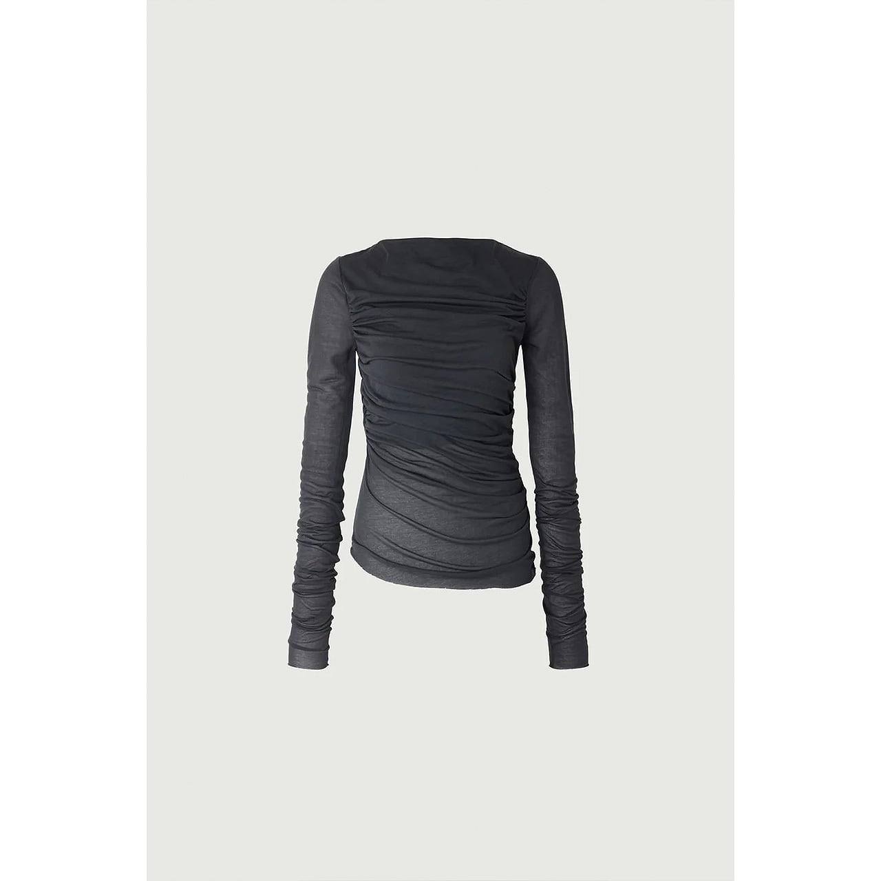 SOEUR - LONG SLEEVED DRAPE COTTON TEE in CHARCOAL GRAY | 60040002