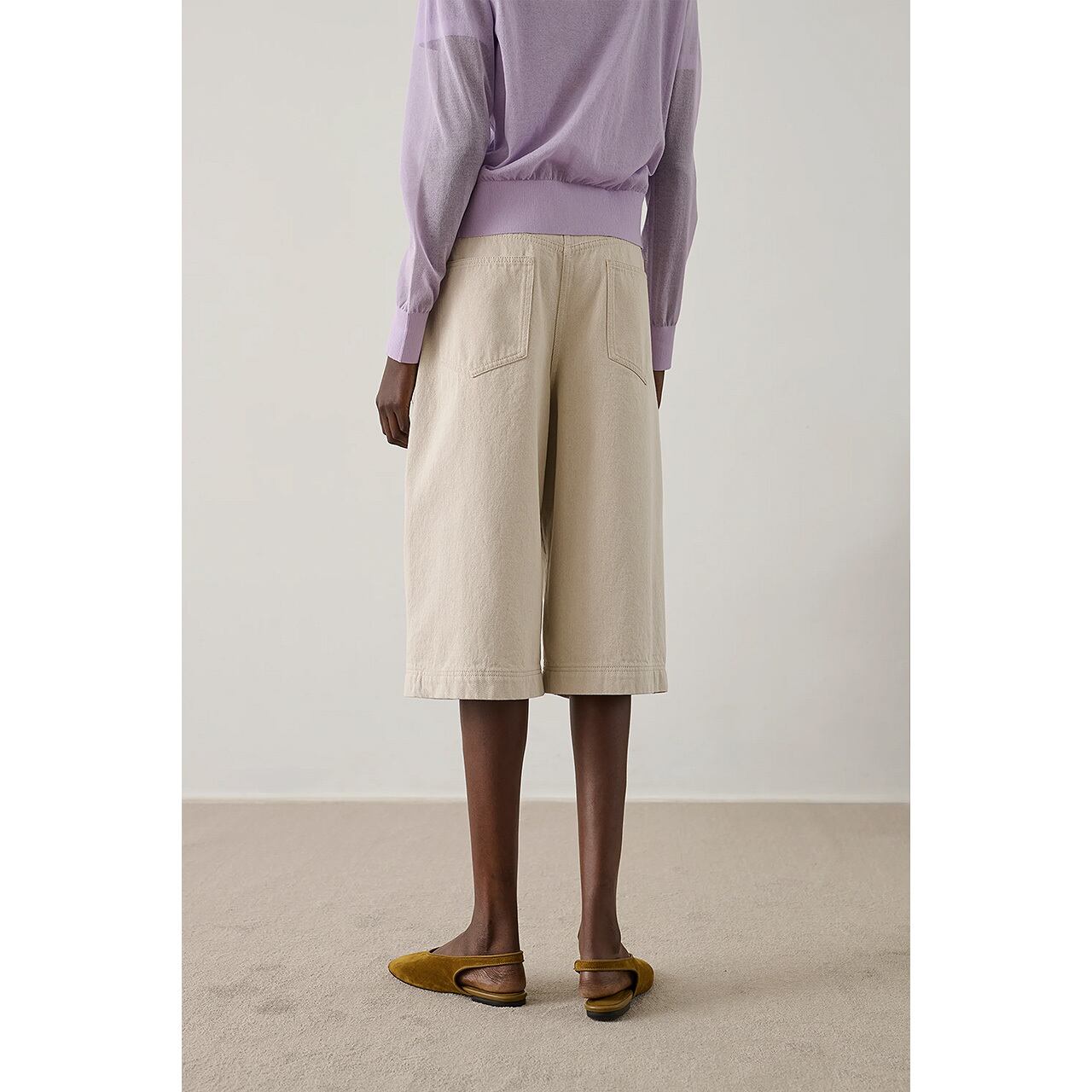 オーバーサイズシルエットのバミューダジーンズ。