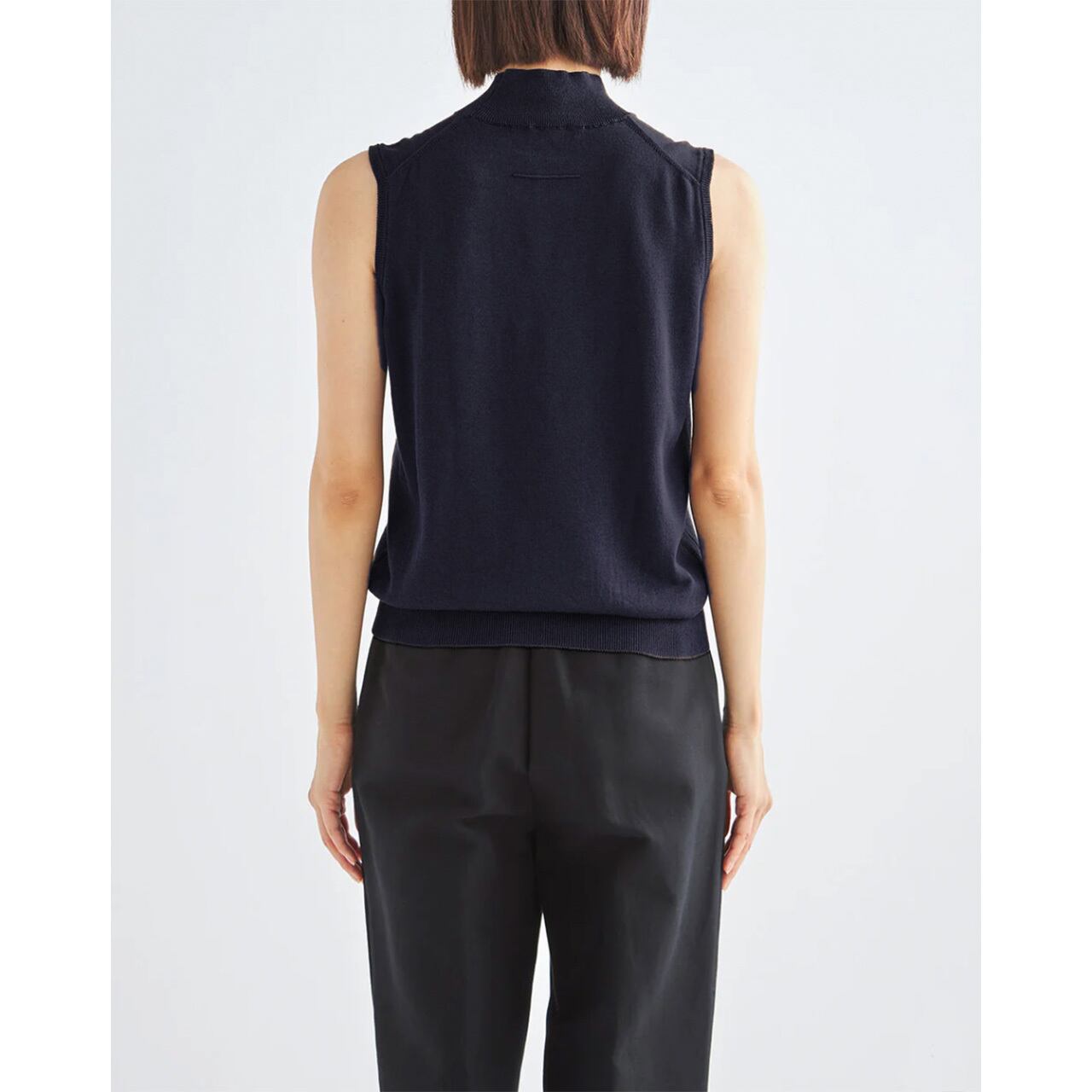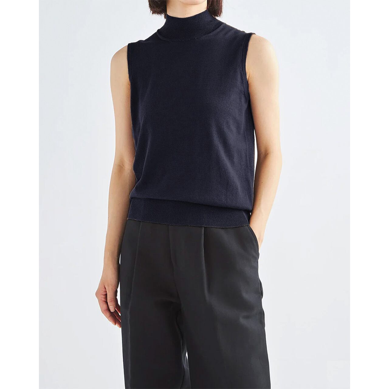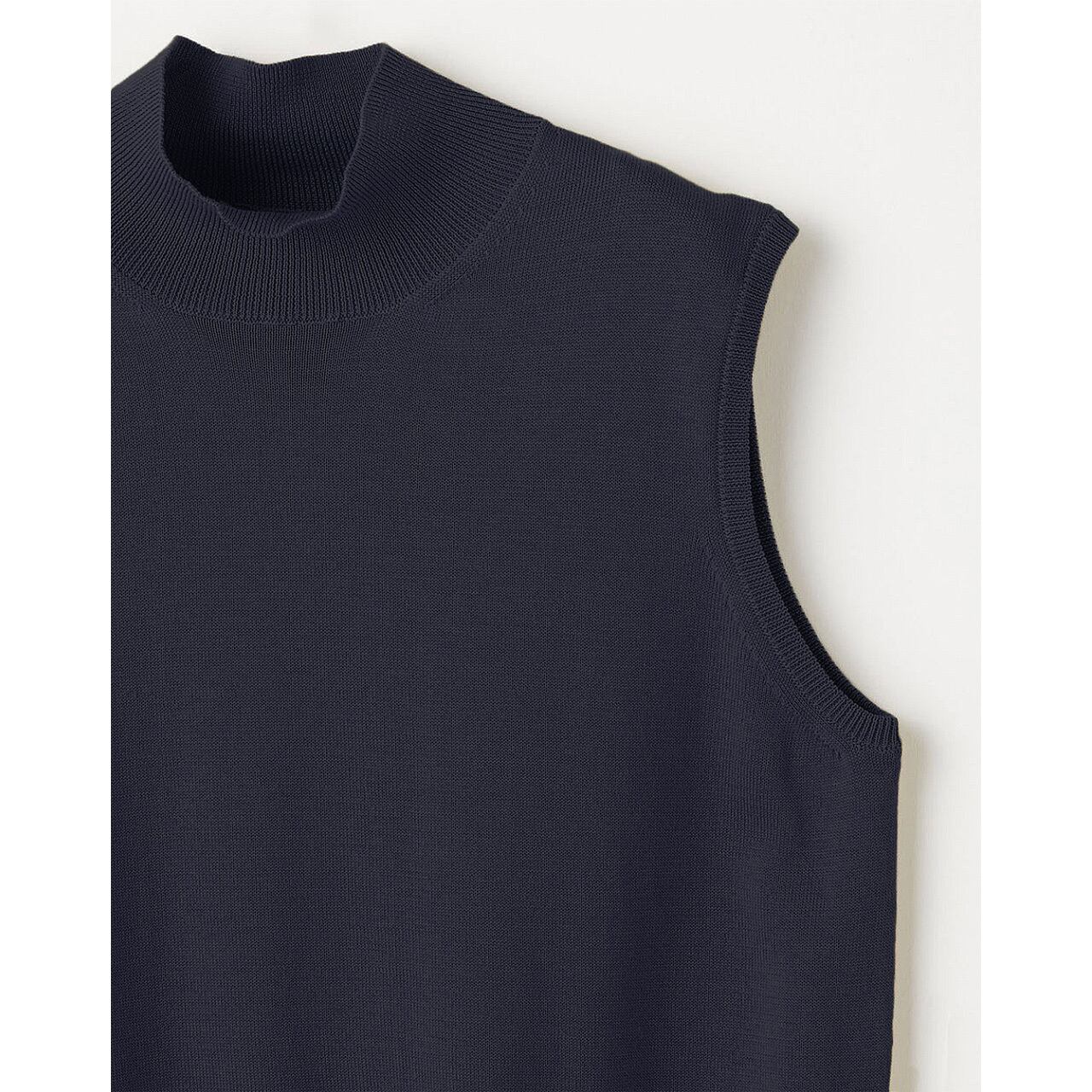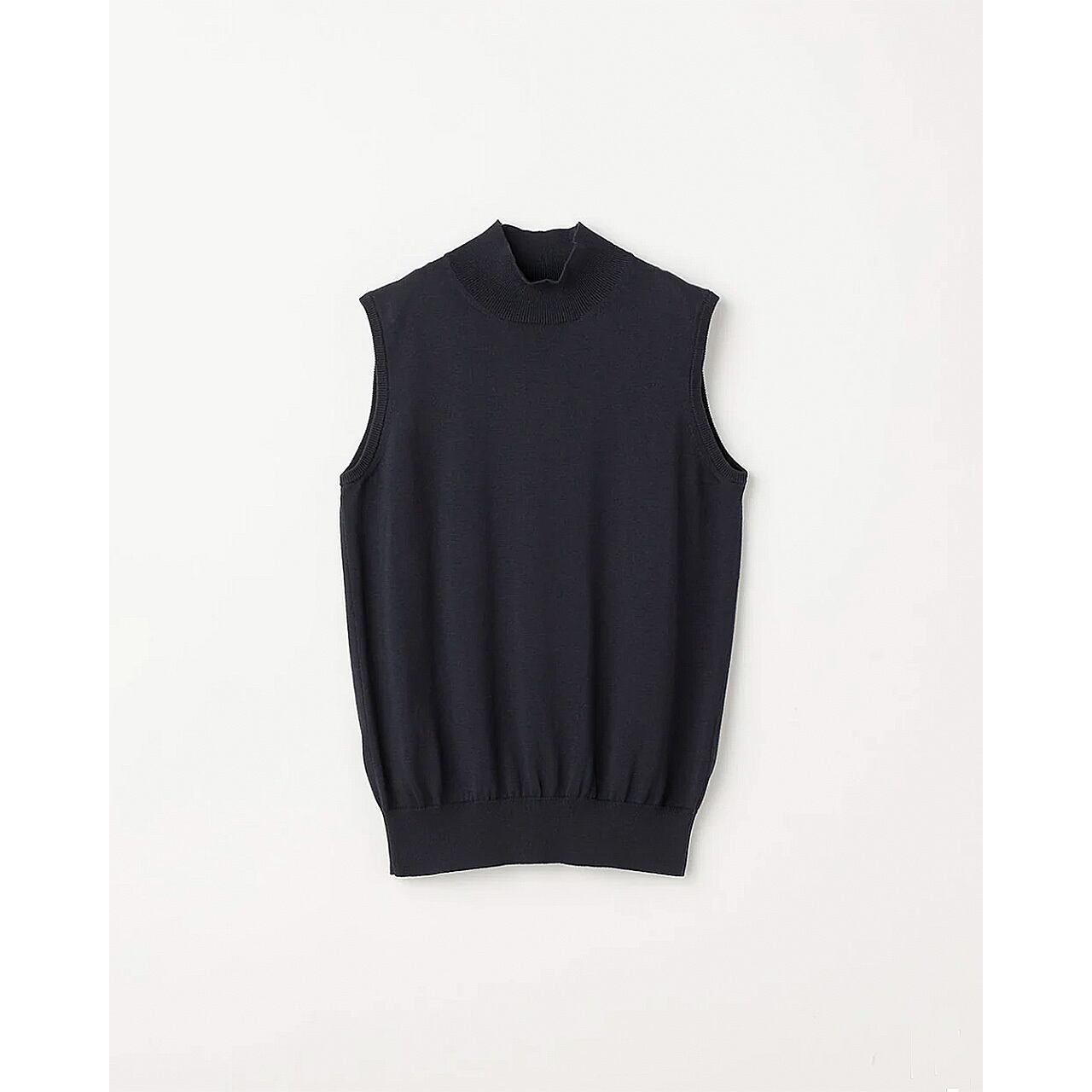 14ゲージ天竺編みをフルファッション*で丁寧に編み立てた ノースリーブハイネック。