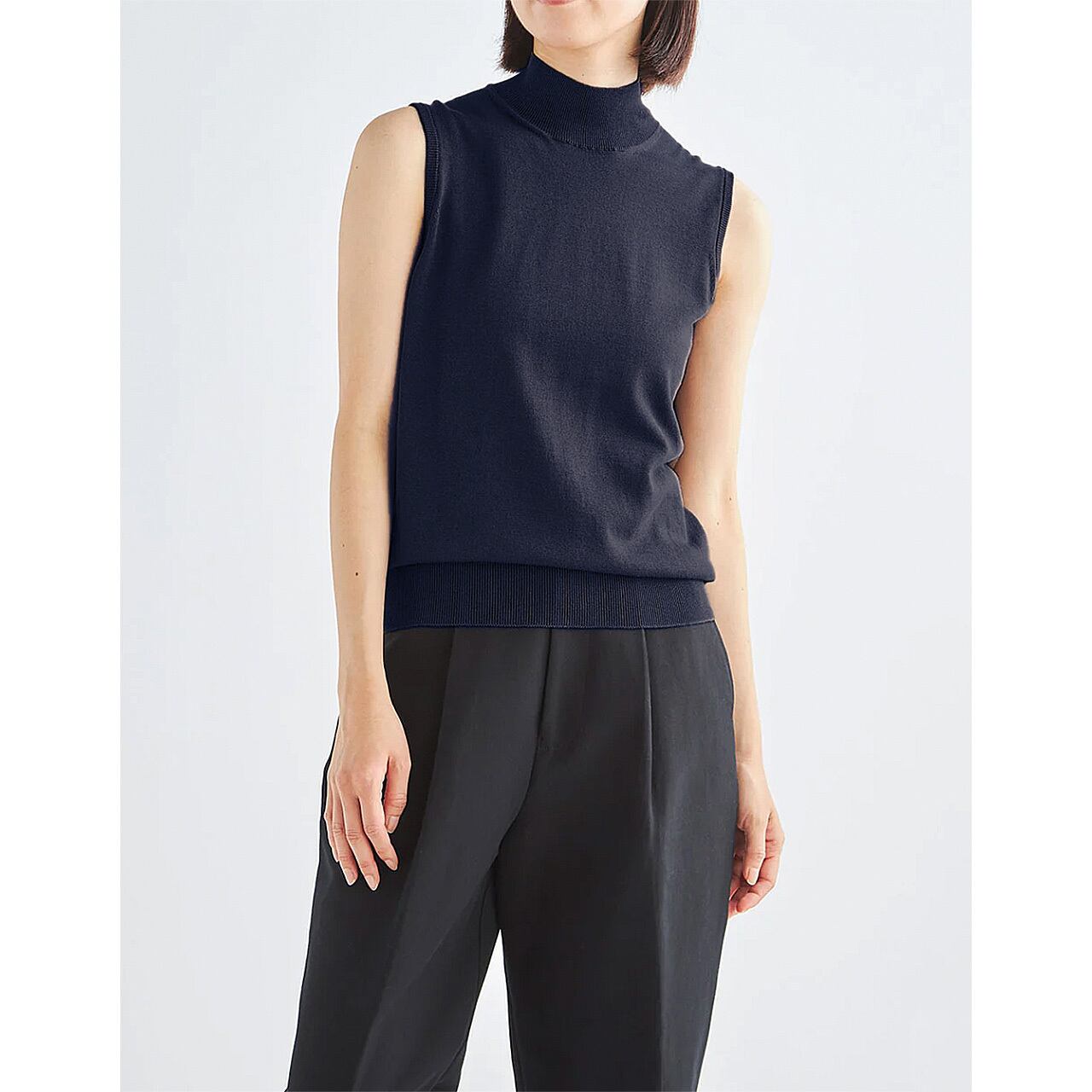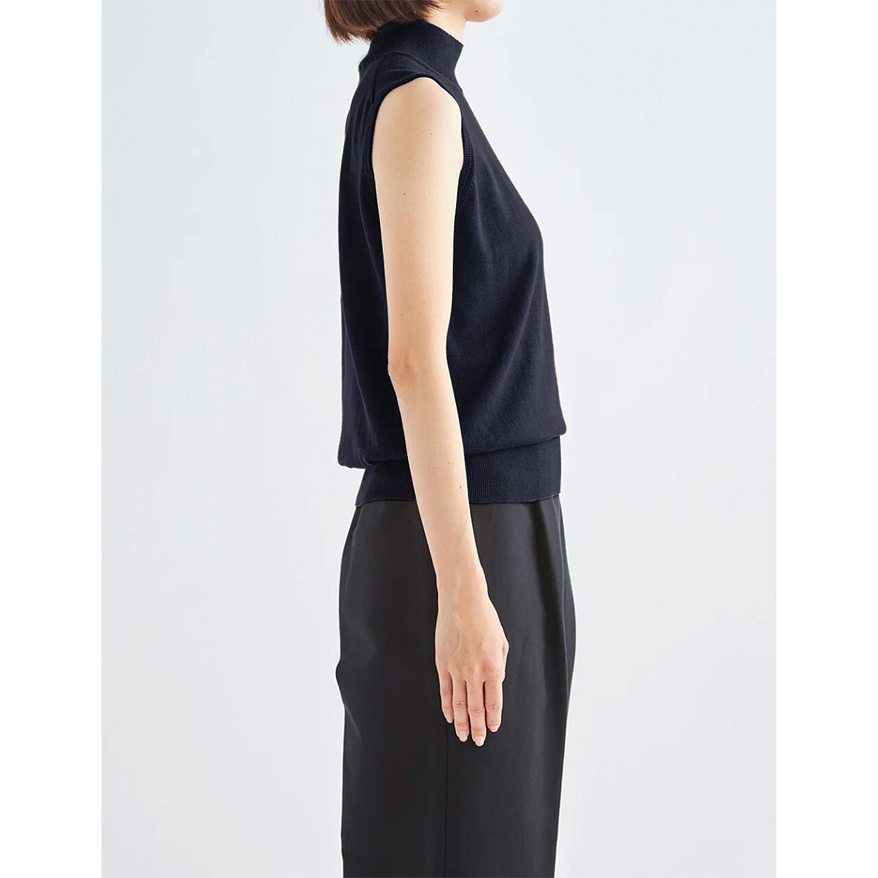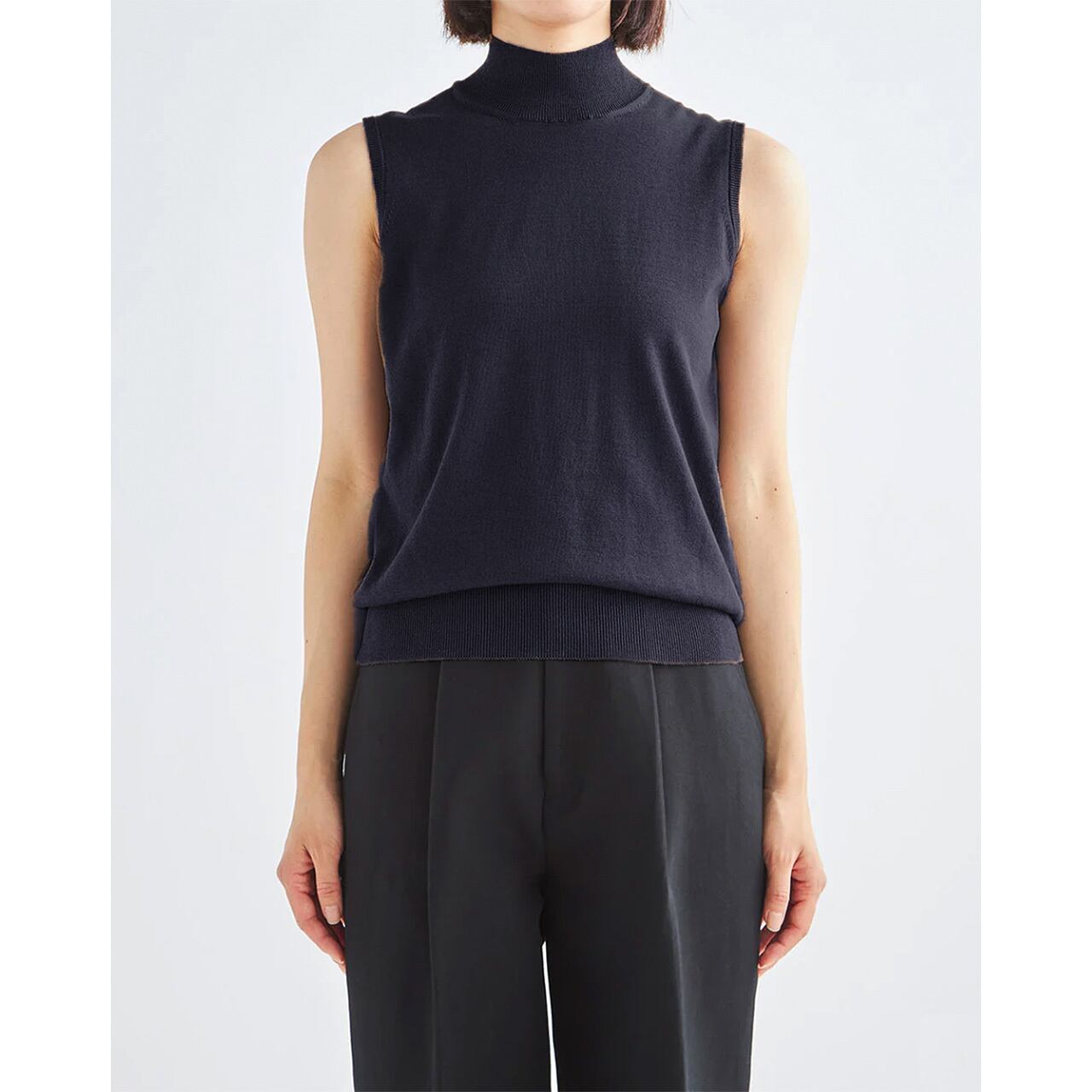 14ゲージ天竺編みをフルファッション*で丁寧に編み立てた ノースリーブハイネック。