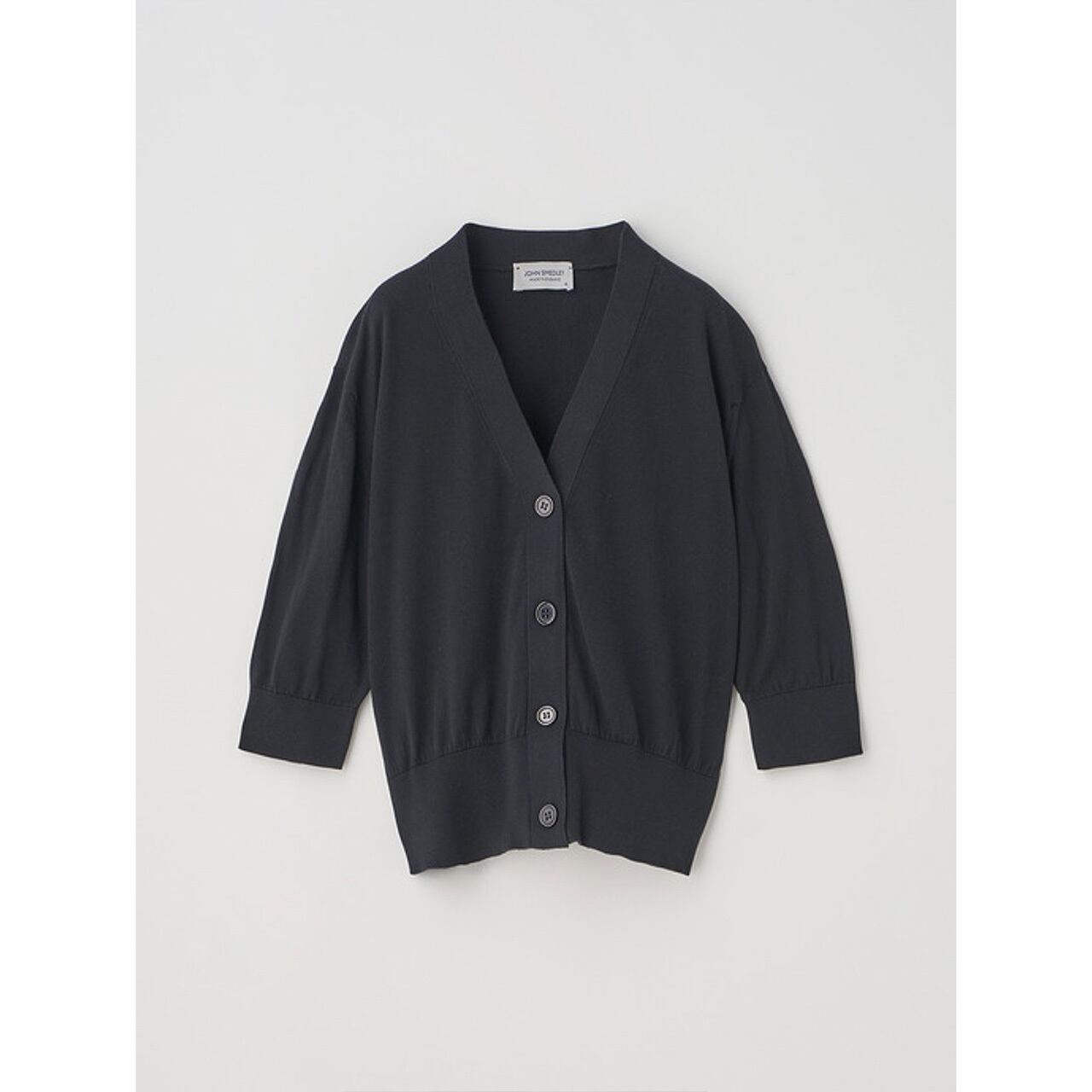 JOHN SMEDLEY - CROPPED COTTON KNIT CARDIGAN in BLACK | S4741