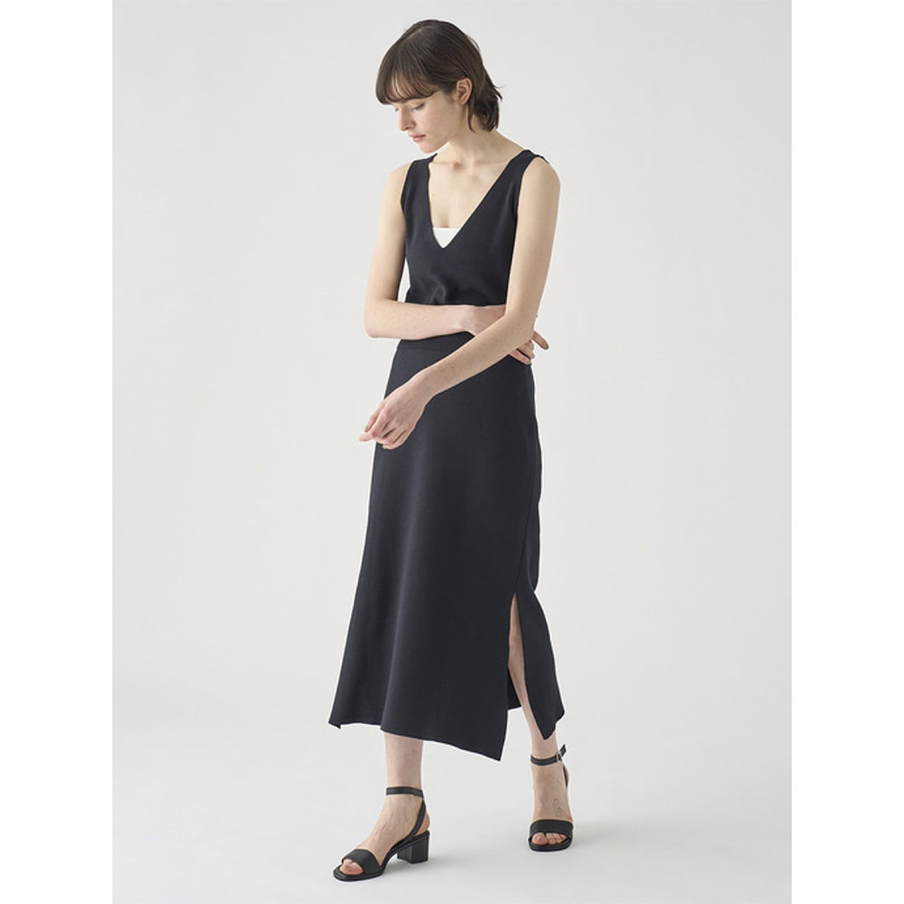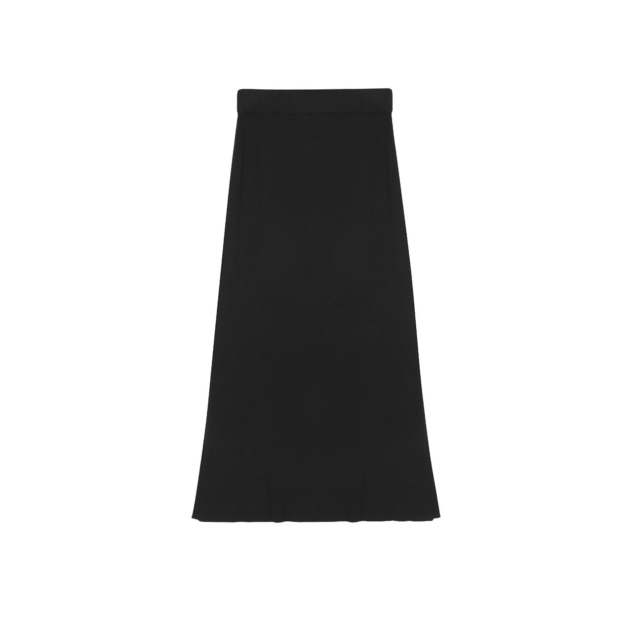 シーアイランドコットンを使用したヌアラスカートは、全体にリブ編みが施され、伸縮性がよく、ニットならではの心地よい着用感。