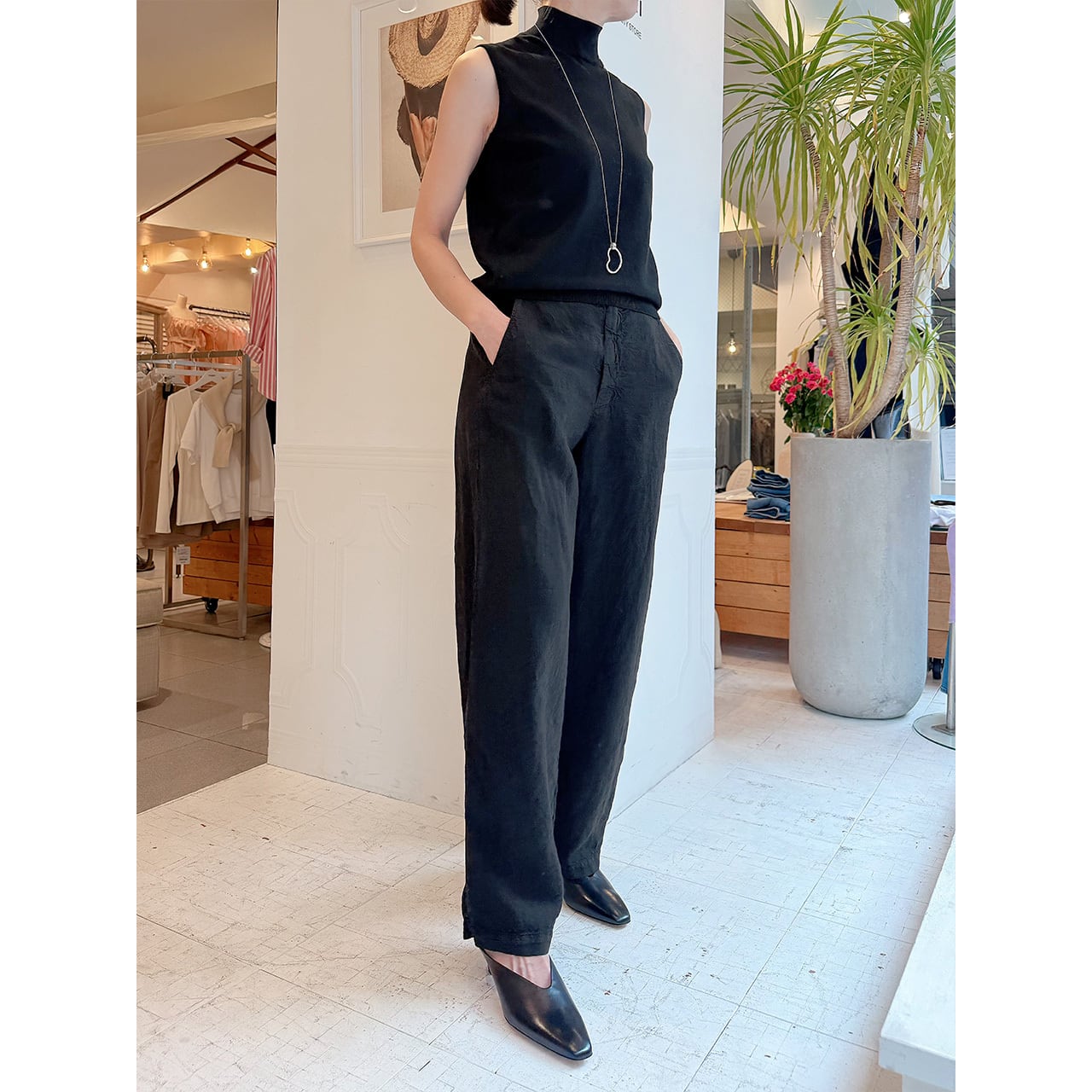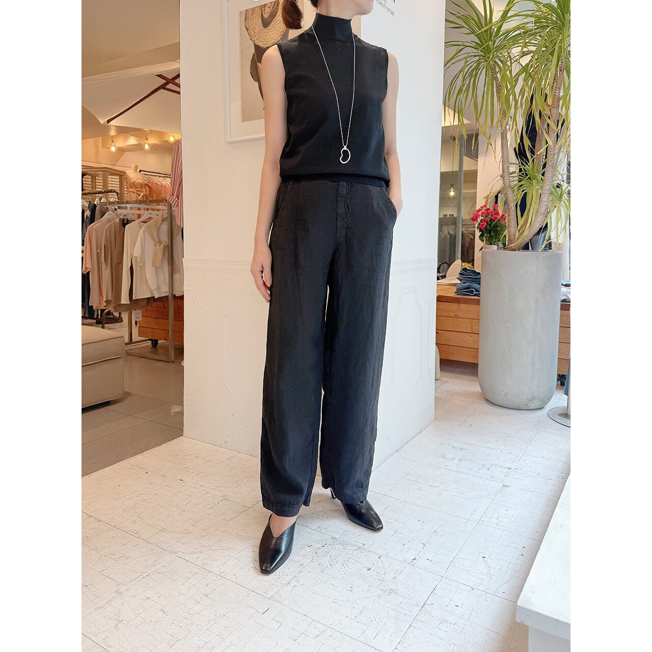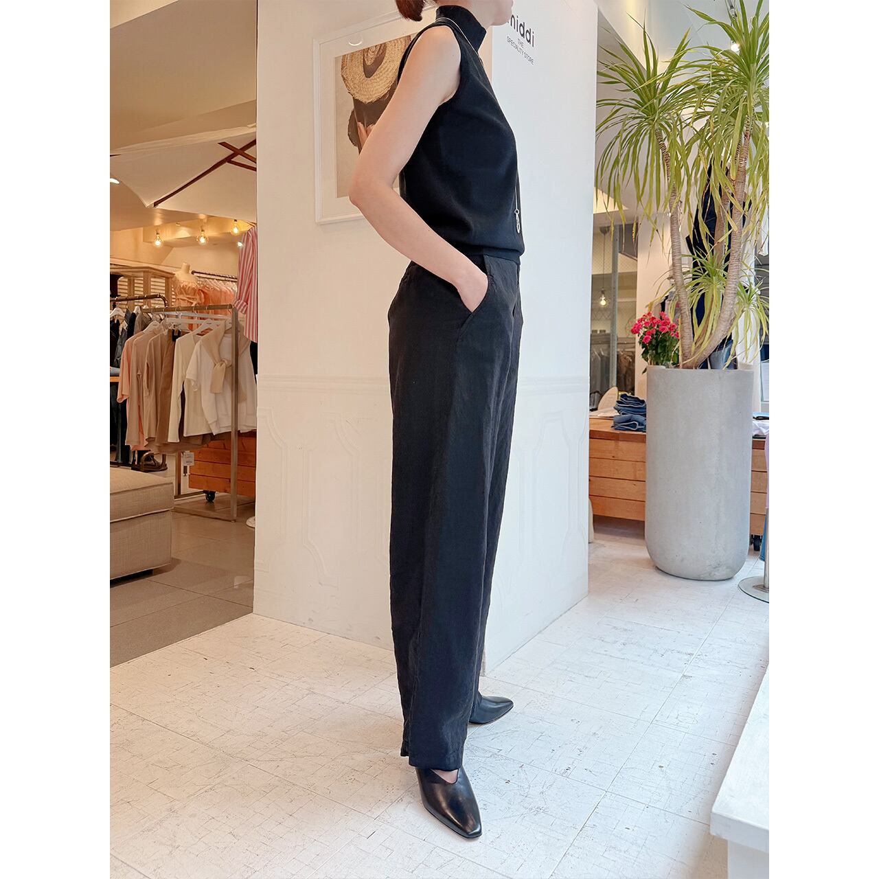 軽くて滑らかなリネン生地を使用したリラクシーな履き心地のストレートパンツ。