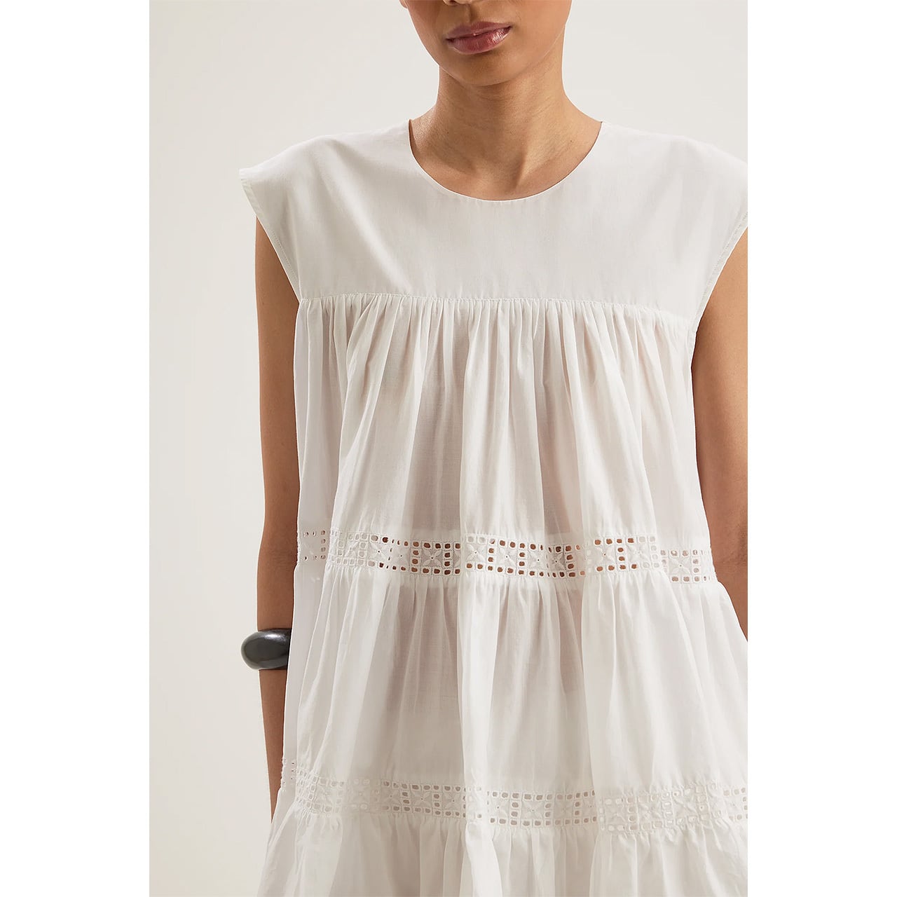 軽やかなピマコットンローンで仕立てたティアードが、構築的でありながらリラックス感のあるシルエットを描きます。