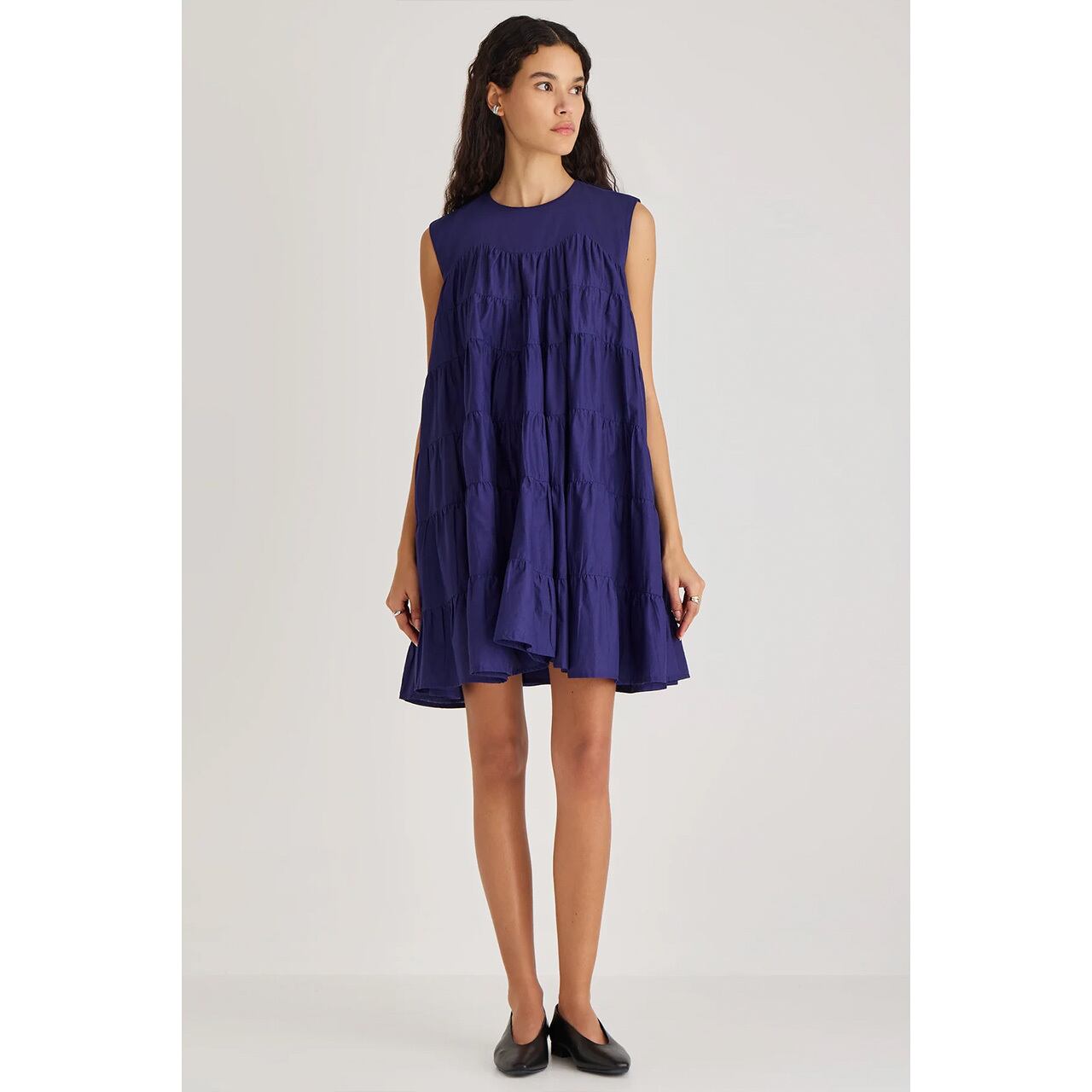 優雅で穏やかな気品と現代的な感覚を兼ね備えたミニティアードドレス。