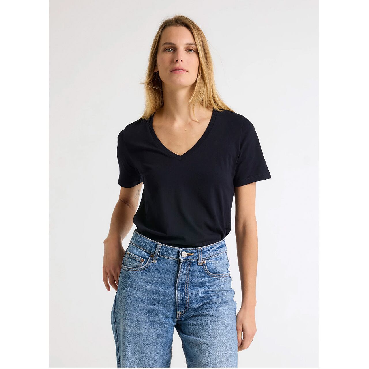 MAJESTIC FILATURES - SILK TOUCH COTTON V-NECK T-SHIRT in NAVY | 6103-14-392