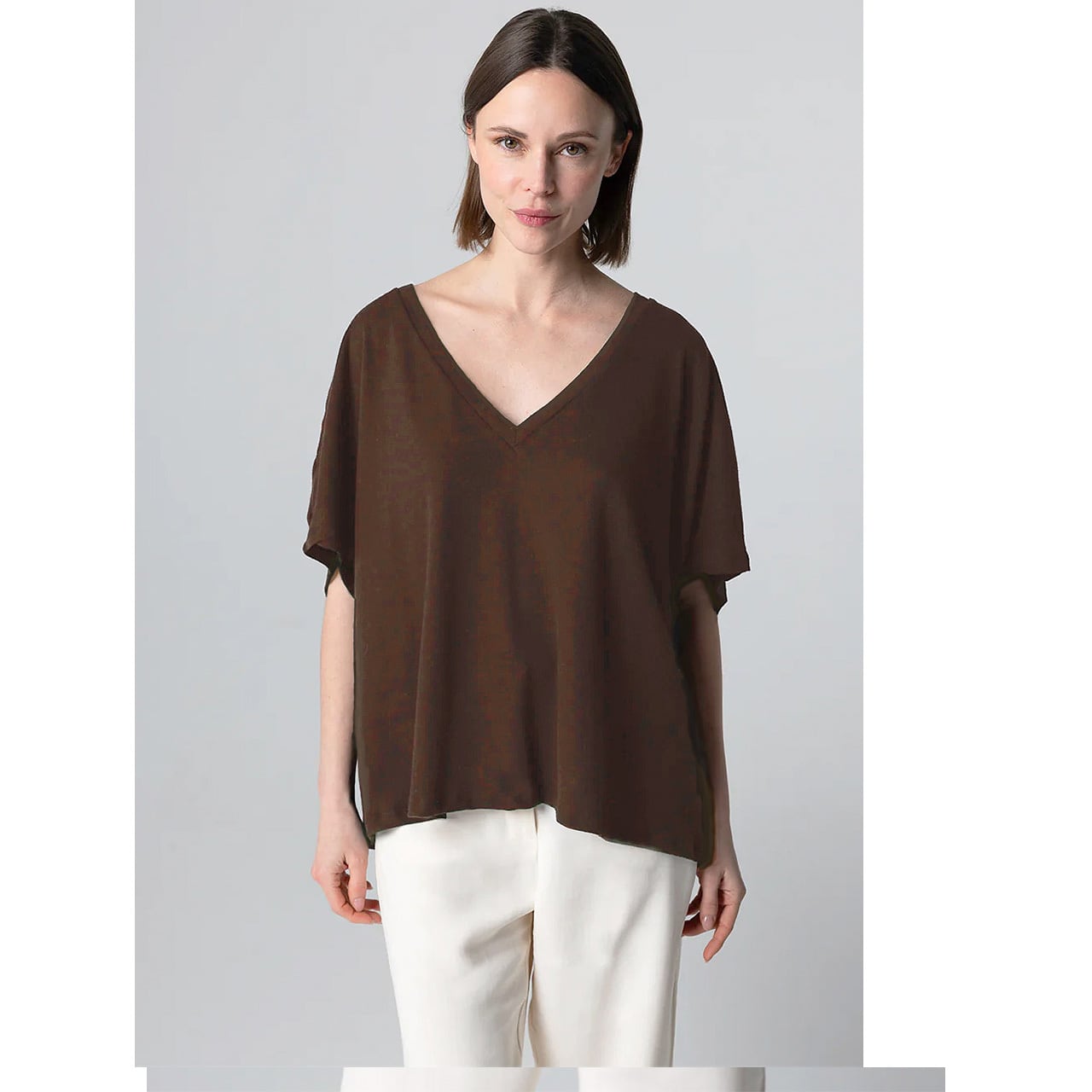 MAJESTIC FILATURES - COTTON and LINEN V-NECK T-SHIRT in WHITE | 6103-14-138