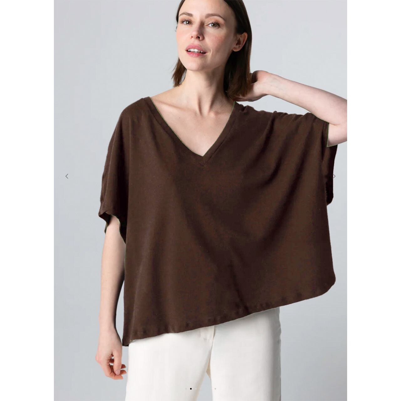 MAJESTIC FILATURES - COTTON and LINEN V-NECK T-SHIRT in BROWN| 6103-14-138