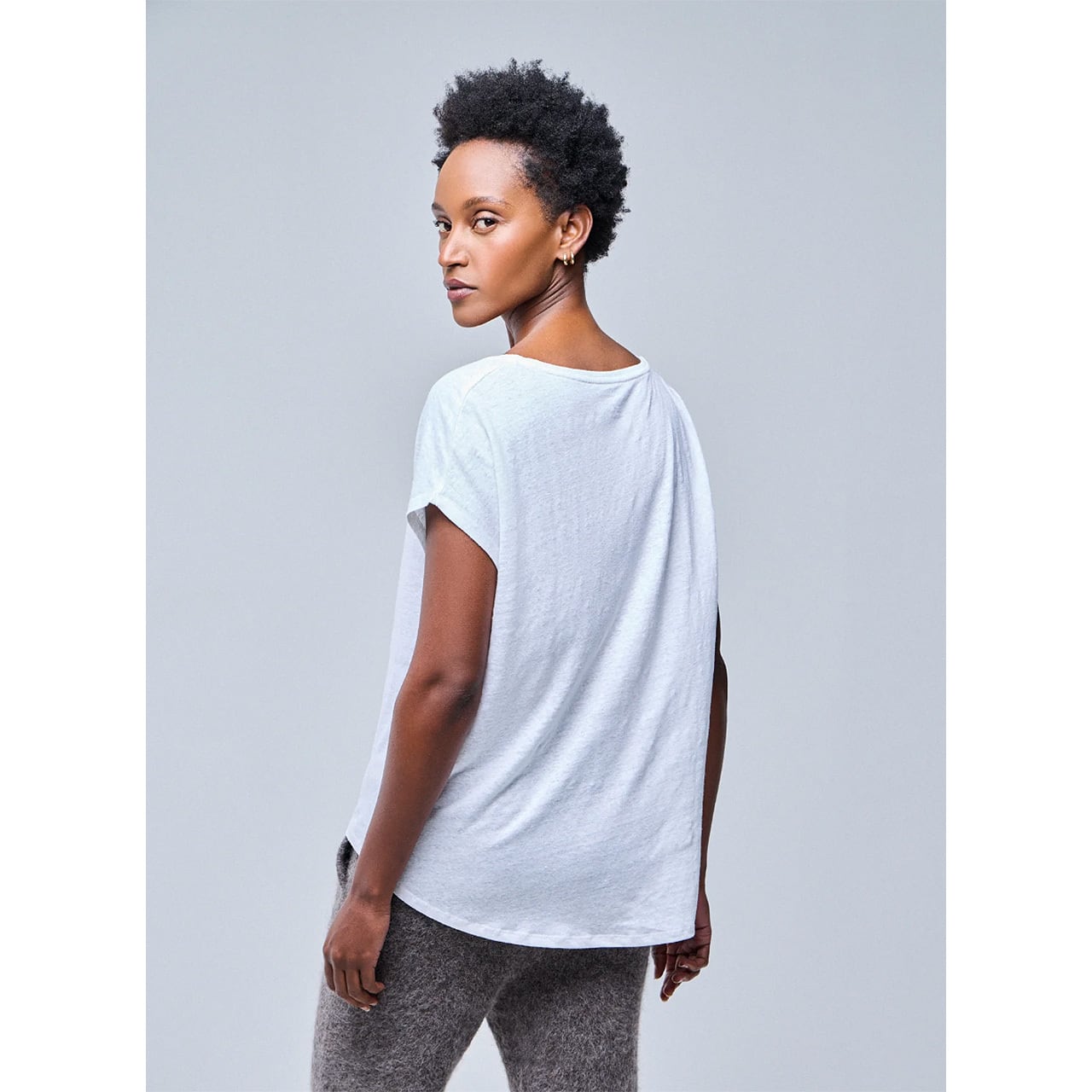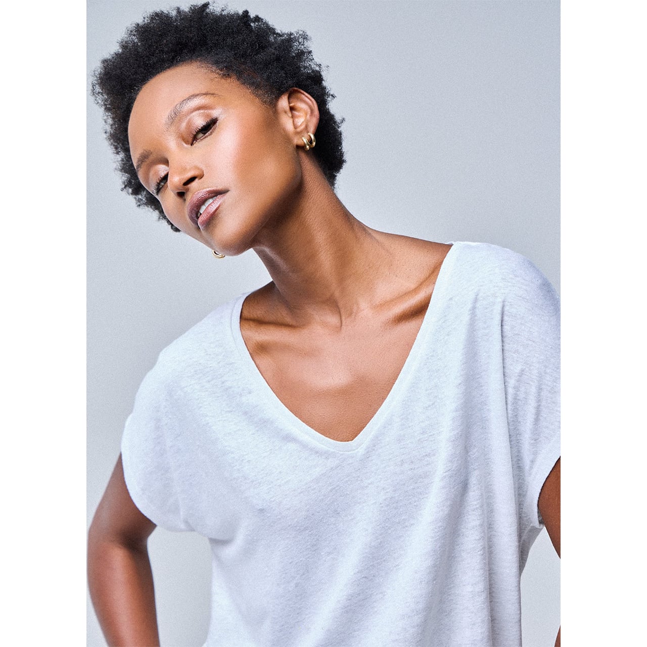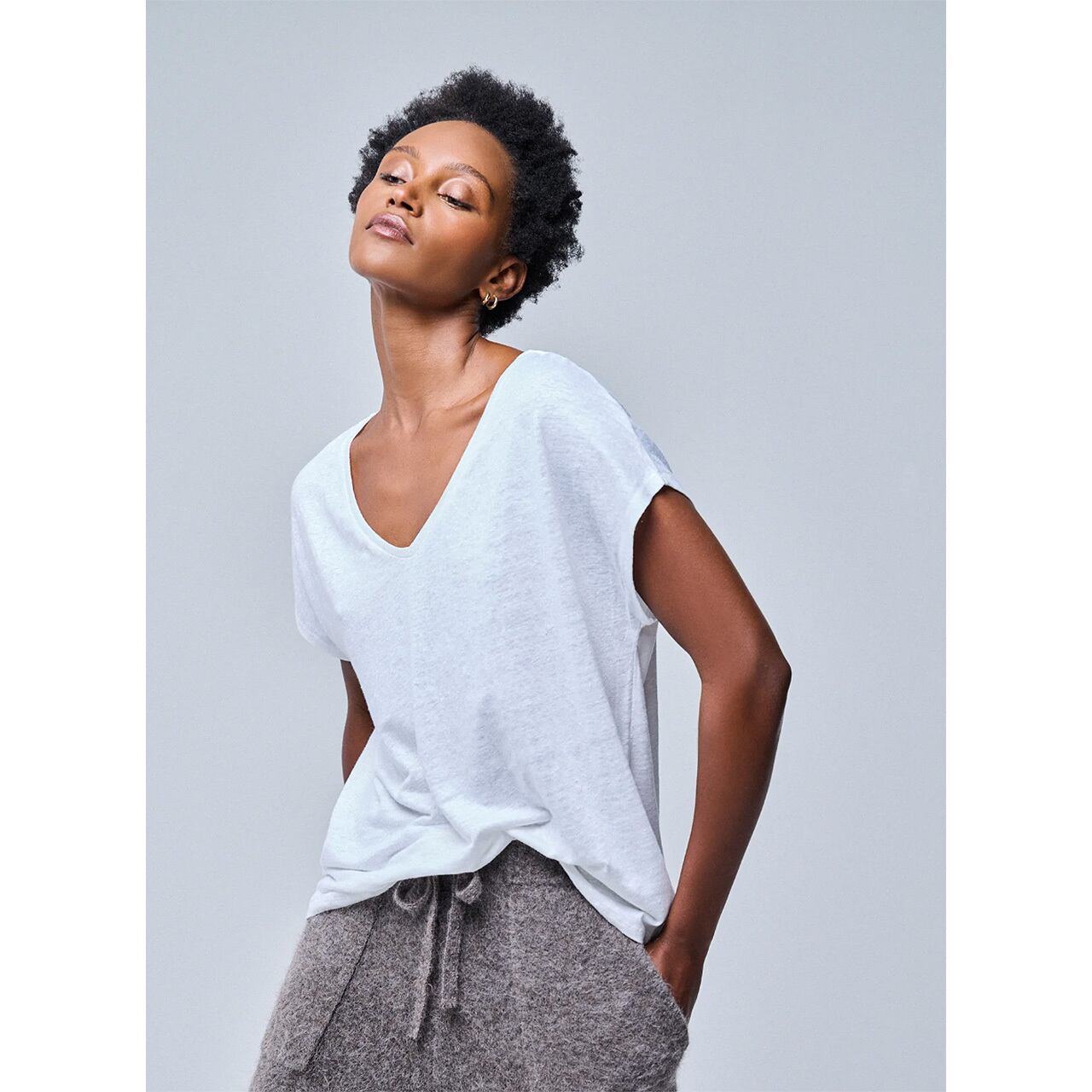 コットン&リネンのドライな肌触りとリラクシーな着心地が叶う、VネックTシャツ。