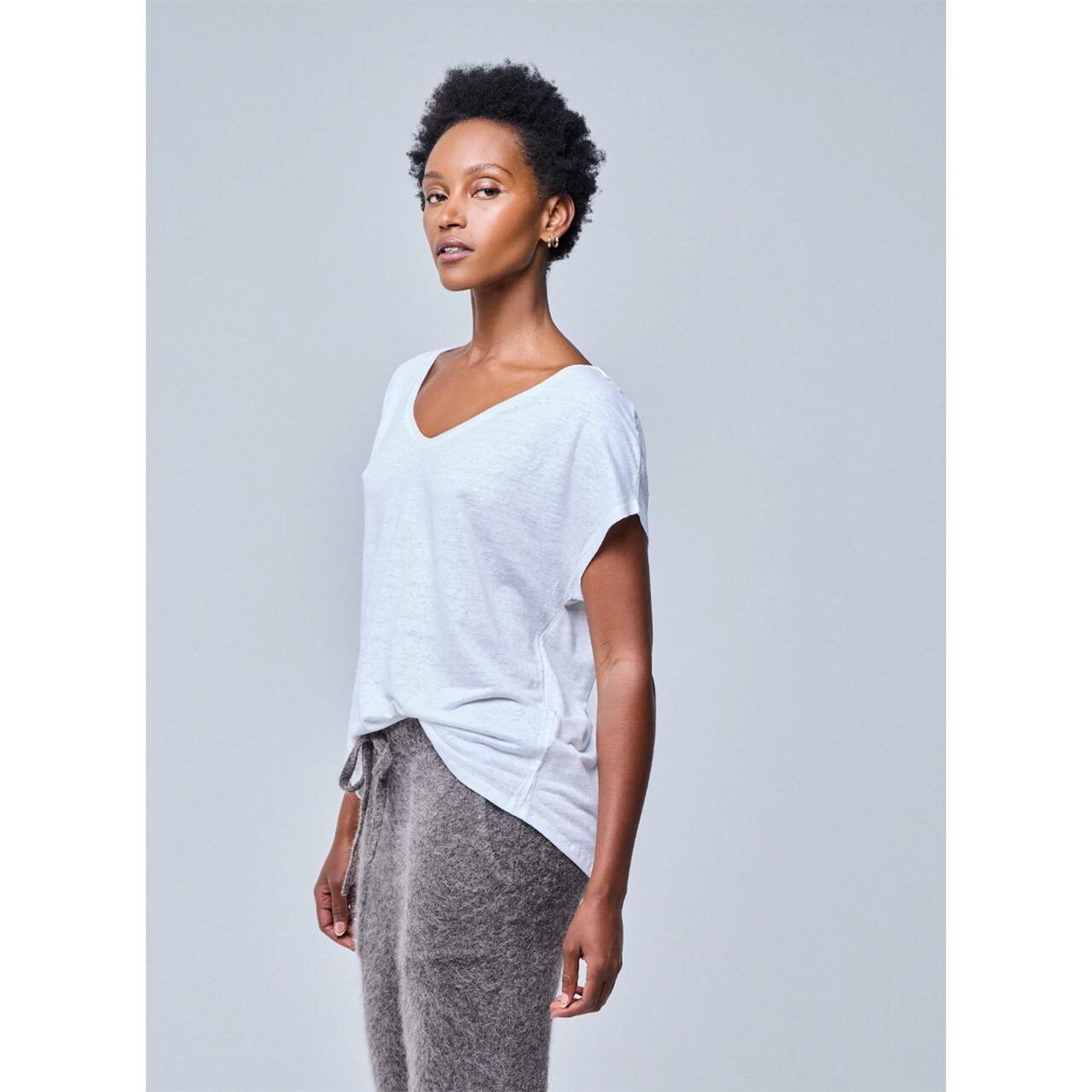 MAJESTIC FILATURES -JERSEY LINEN V-NECK T-SHIRT in WHITE | M011-FT1111