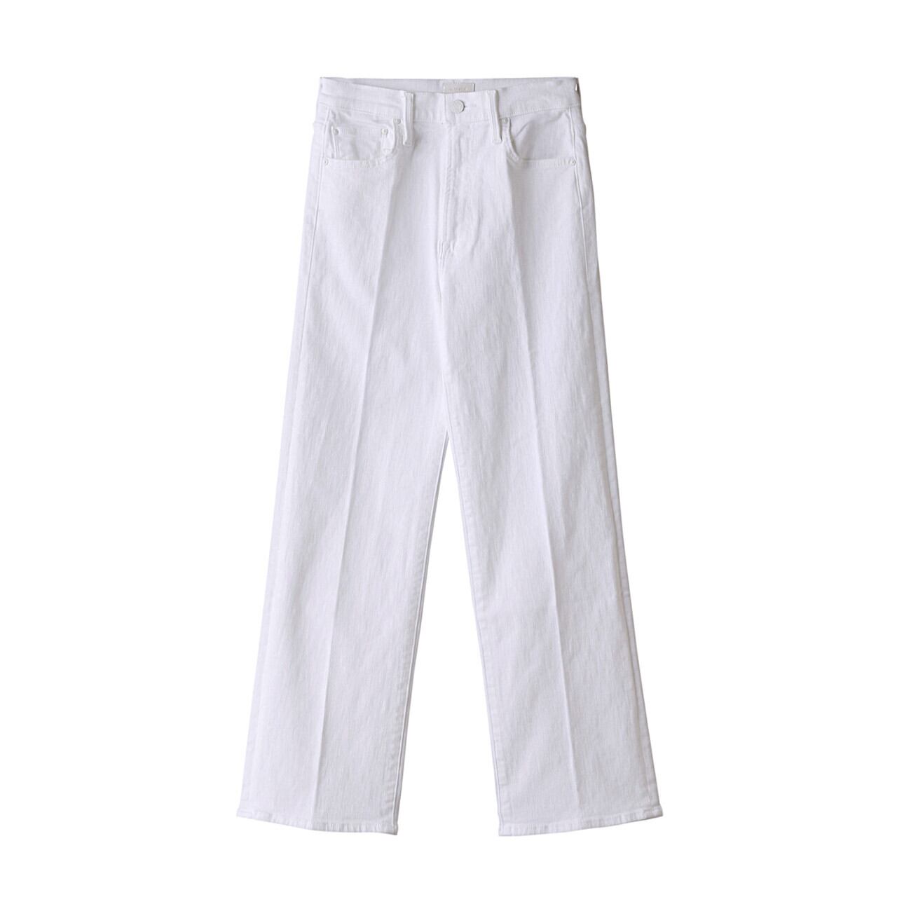 コーディネートに新鮮なアクセントを効かせる、ホワイトカラーが印象的なデニムパンツ。程よく腰まわりをカバーするハイライズとややフレアなシルエットで、スタイルアップ効果も◎。